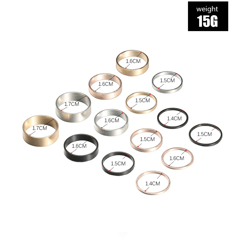 Набор Колец женских серебряных в богемном стиле, 15 шт.компл.