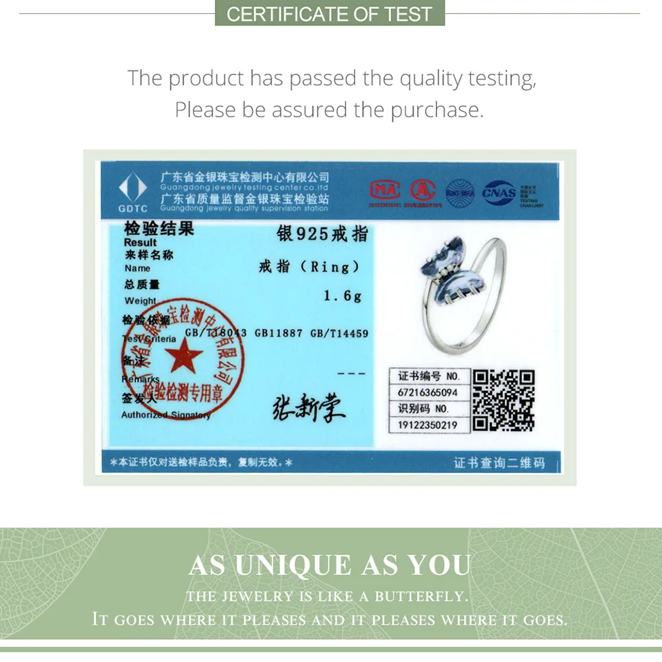 Номер СертификатаWOSTU 925 Sterling Sliver Mystical Butterfly Rings
