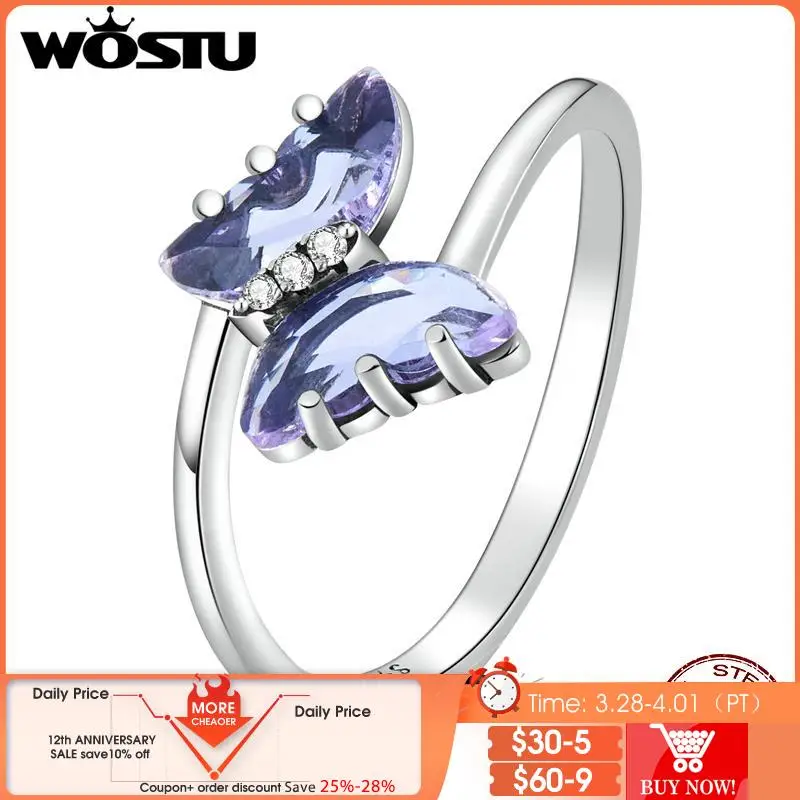 Женские мистические кольца WOSTU из стерлингового серебра 925 пробы с бабочкой, фиолетовое кольцо из циркона, вечерние ювелирные изделия для девушек, подарок FIR797
