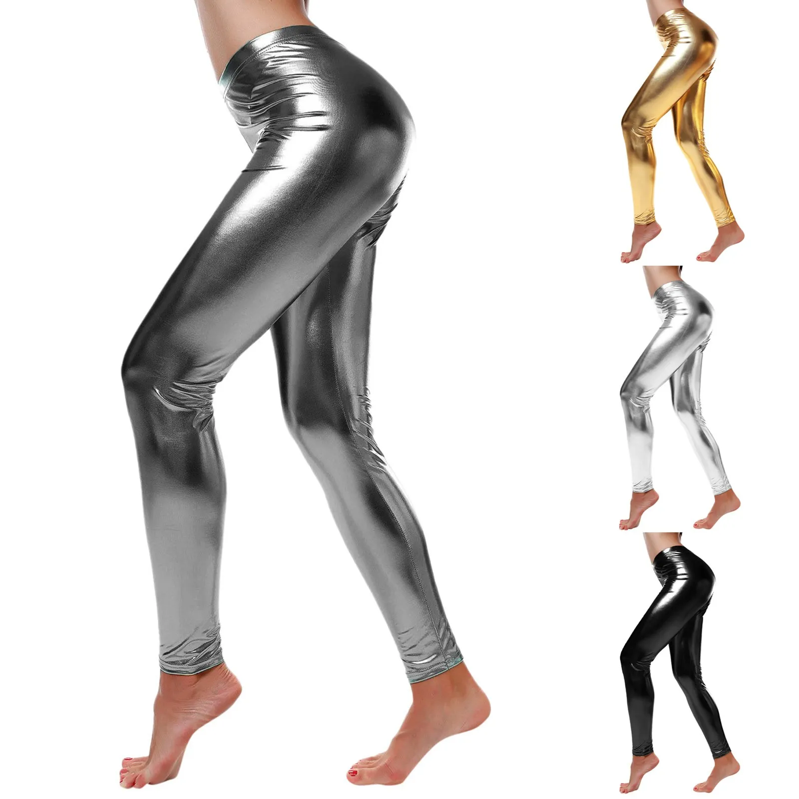 Женские леггинсы из искусственной кожи с мокрым эффектом металлик талии леггинсы, трико, брюки