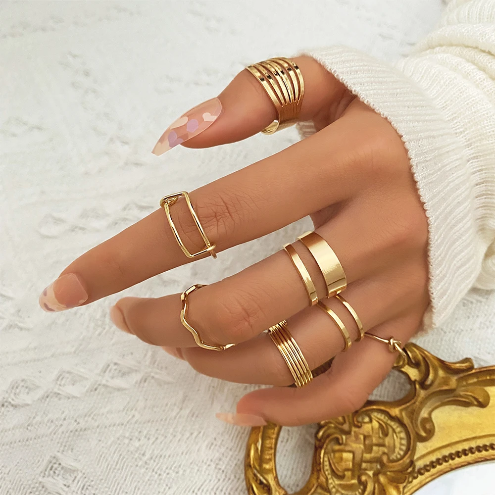 Набор Колец IFME для мужчин и женщин, модные простые геометрические кольца на палец золотого и серебряного цвета в стиле панк, Подарочная бижутерия, 7 шт., 2022
