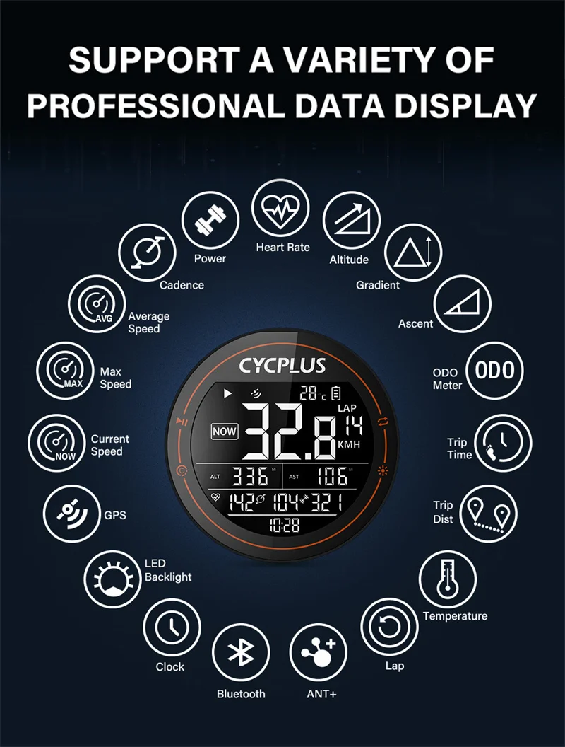4. Протокол периферийного соединения: ANT Bluetooth-совместимый двойной режим, поддерживает различные периферийные аксессуары, встроенный барометр и термометр.
