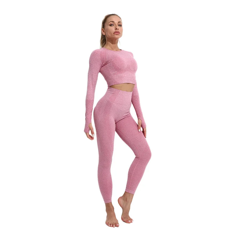 Осенне-зимний бесшовный комплект для йоги, бюстгальтер, леггинсы, Быстросохнущий комплект для тренировок с длинным рукавом, профессиональная одежда для женщин