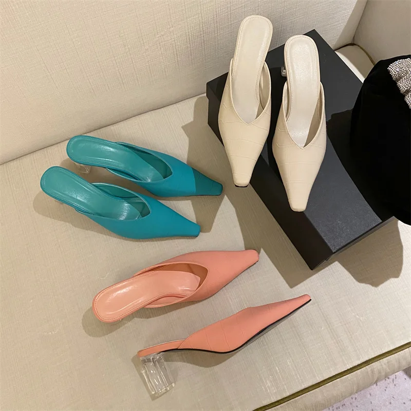 Мюли женские с острым носком, элегантные туфли на низком каблуке 5 см, роскошные брендовые шлепанцы для пляжа, сланцы, телесные, бежевые, лето 2021