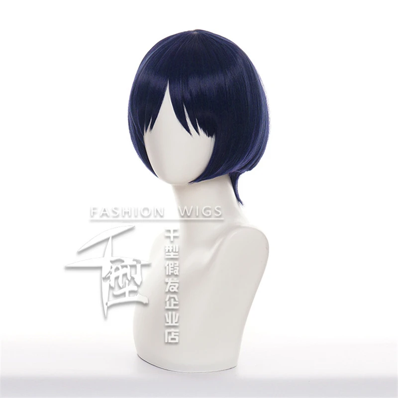 Парик Аниме Genshin Impact Cosplay Scaramouche, темно-синий коротки...