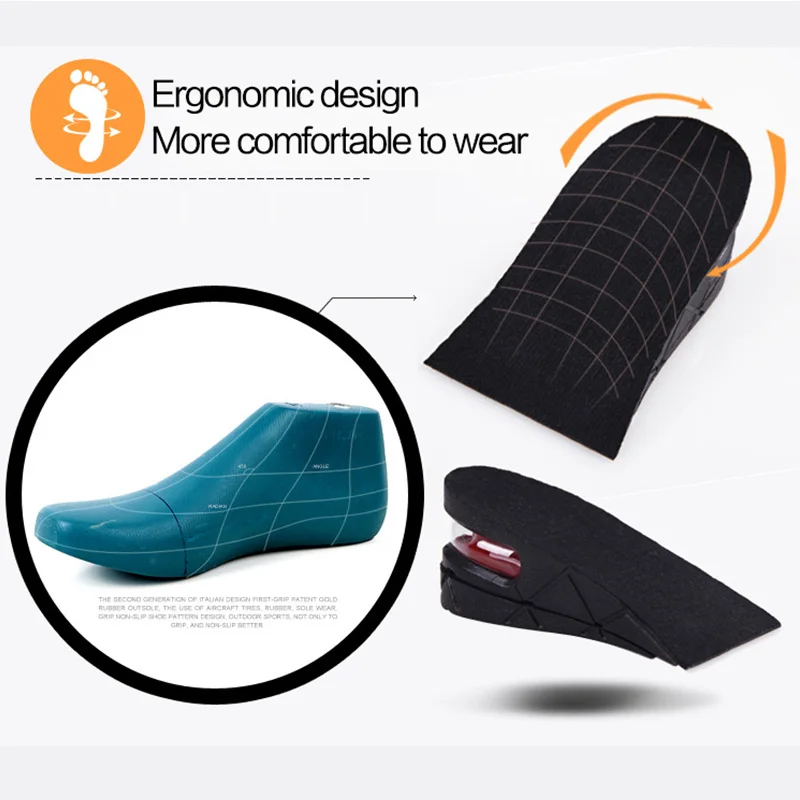 Стельки с увеличением высоты для мужчин и женщин, регулируемые двухуровневые стельки 5 см, воздушная подушка, невидимые вставки для обуви, 6 цветов