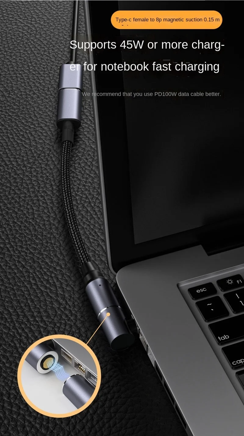 Магнитный адаптер 100 Вт USB Type C Мама на 8 контактов, Круглый ад...