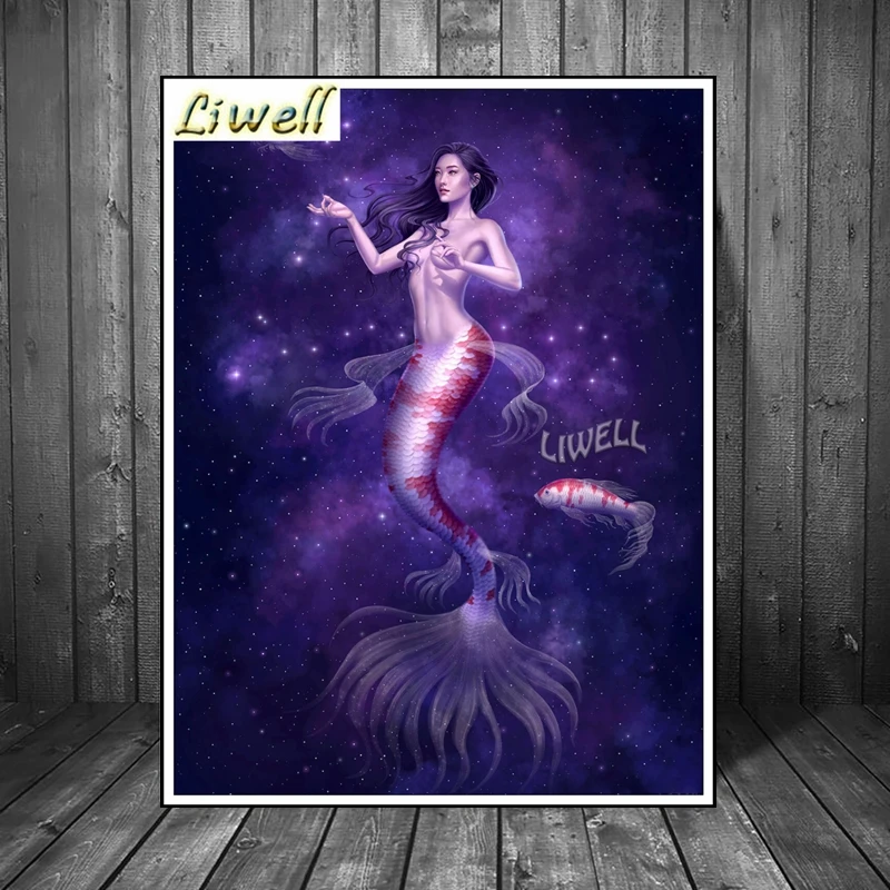 Алмазная живопись русалка с голубым океаном, Набор для вышивки крес...