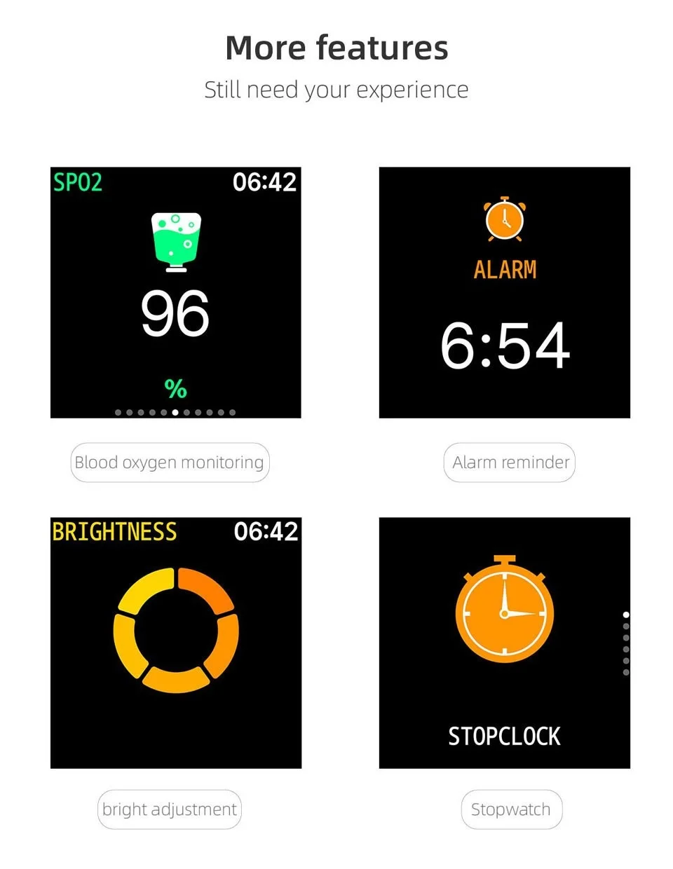 A P * L E<;br/> Примечание: Эти часы очень похожи на оригинальные. <; Br/> Если вы хотите увидеть более реальные фотографии, пожалуйста, отправьте мне сообщение <;br/> Смарт-часы для мужчин и женщин, водонепроницаемые Смарт-часы с монитором сердечного ритма и артериального давления для Apple Watch, iPhone, Android, спортивные часы <;br/>Q & amp; a1это оригинальные часы **** watch?<;br/> Нет, они не оригинальные, просто дизайн очень похож, но часы также имеют много аналогичных функций, И цена намного дешевле.<;br/>2. Водонепроницаемость часов?<;br/> Да, водонепроницаемость IP68.<;br/>3. Есть ли у него камера?<;br/> Нет, у нее нет камеры, но она может дистанционно управлять камерой на вашем телефоне, чтобы делать фотографии.<;br/>4. Поддерживает синхронизацию sms?<;br/> Синхронизация старых sms-сообщений доступна для телефонов Android, но отключена для iOS из-за ограничения системы iOS.<;br/> но для iOS часы могут синхронизировать входящие сообщения из центра уведомлений и отображать содержимое сообщения под значком уведомления, а не значком сообщения.<;br/> вы можете получить уведомление о сообщении SMS, Whatsapp, И т. Д.,<;br/> когда есть входящее push-сообщение на вашем телефоне и Android и iOS.<;br/>5. Является ли результат монитора сердечного ритма точным?<;br/> Из-за того, что устройство контроля сердечного ритма не является профессиональным медицинским или спортивным инструментом обнаружения, результат может быть не очень точным, как те профессиональные инструменты. Эта функция просто для удовольствия. Вы можете использовать профессиональный инструмент, если вам нужны более точные данные.<;br/>6. Тип беспроводной связи: Bluetooth. <; Br/> этот наушник подключается через bluetooth, вы не можете подключить другое bluetooth-устройство одновременно.<;br/>7. Поддержка дропшиппинг?<;br/> Мы поддерживаем дропшиппинг, Пожалуйста, разместите заказ напрямую и обратите внимание, мы тщательно проверяем и защищаем Продукт безопасно при транспортировке перед отправкой. <; Br/> если вы хотите заработать больше денег, пожалуйста, свяжитесь с нами. С нетерпением ждем построить хорошее сотрудничество с вами.<;br/>8. Как зарядить часы? Как проверить оставшуюся батарею?<;br/> У нас есть usb-кабель, пожалуйста, используйте его для зарядки. <; Br/> прокрутите вниз! !<; Br/> характеристики продукта & amp;FunctionsareatthebottomMan женские Смарт-часы водонепроницаемые умные часы пульсометр для Apple Watch iPhone Android спортивные часы <;br/> Параметры <;br/><; br/> Дисплей Технические характеристики: 1,3 inch IPS разрешение экрана 240*240<;br/> к касаниям одним нажатием кнопки на экране <;br/> Тип аккумулятора: 200 мАч <;br/> динамический пульс/кровяное давление: Поддержка <;br/> Метод зарядки: Магнитная Зарядка <;br/> тип Bluetooth: Bluetooth 4,0 <;br/> Поддержка приложения: Da Fit<;br/> Мобильный телефон Системные требования: Поддержка Android 4,4 и выше, IOS 9,0 или выше <;br/> Основная функция:<;br/> шагомер/Калории: Поддержка <;br/> мониторинг сна: Поддержка <;br/> Вибрационный двигатель: Поддержка <;br/> напоминание о тревоге: Поддержка <;br/> отказ от вызова: поддержка долгого нажатия браслета, чтобы повесить <;br/> телефон с притеснениями: Поддержка встроенного дисплея для телефона <;br/> секундомер: Поддержка <;br/> мульти-спортивный режим: Поддержка 8 спортивных режимов, таких как ходьба, Бег, плавание, бадминтон, Футбол <;br/> напоминание о сидячем положении: Поддержка <;br/> напоминание о звонках/SMS напоминание: Поддержка Android, IOS push Call и содержание сообщений <;br/> другие толпы: Подде