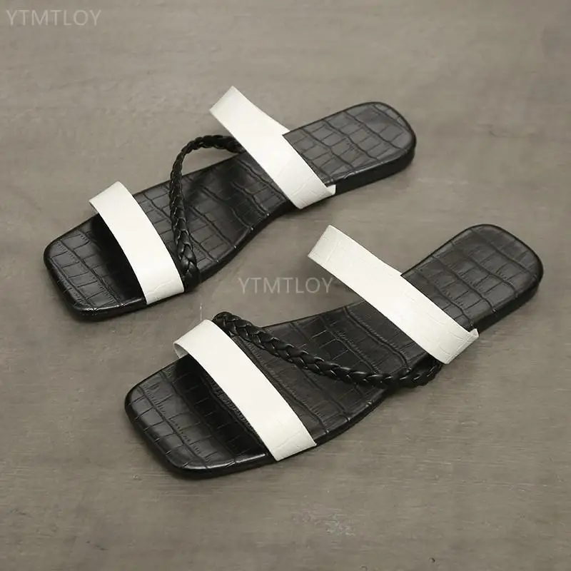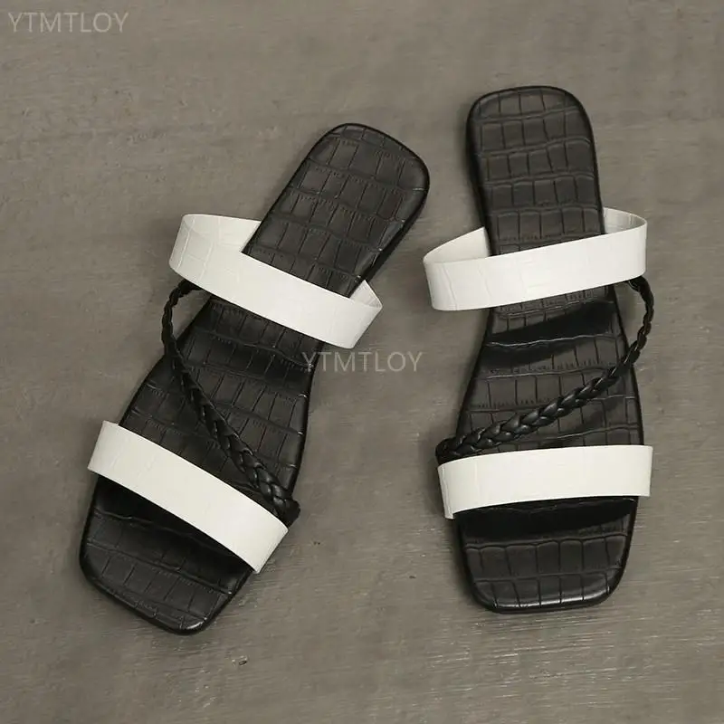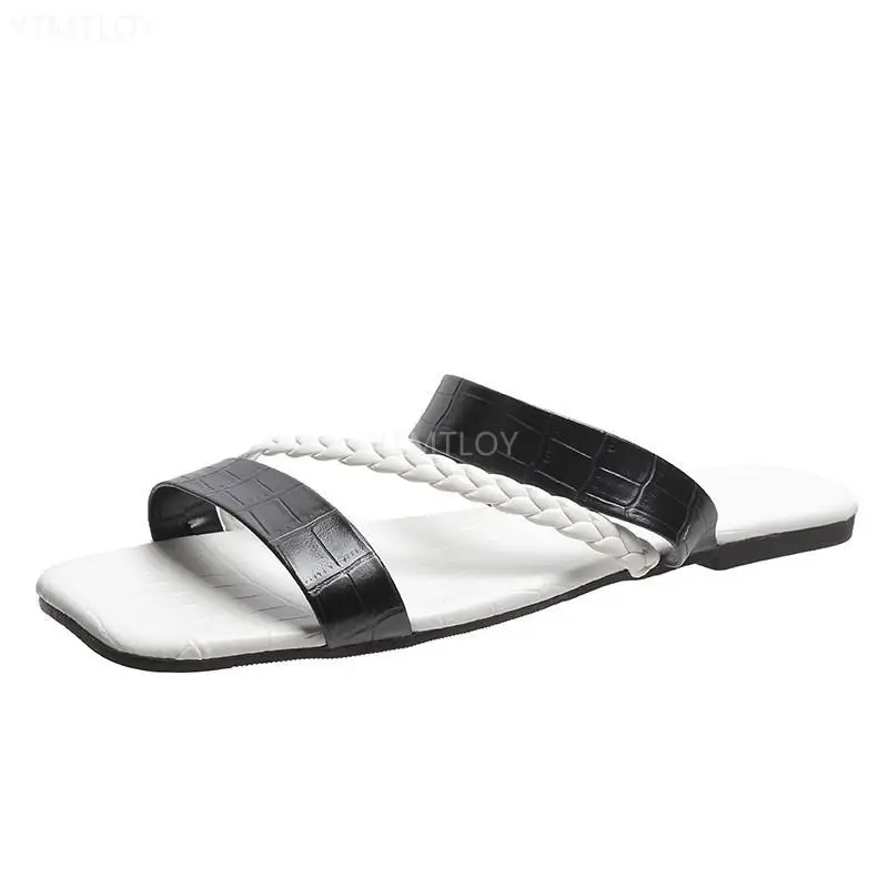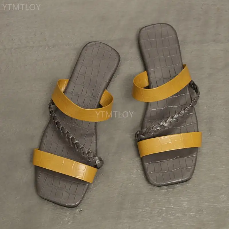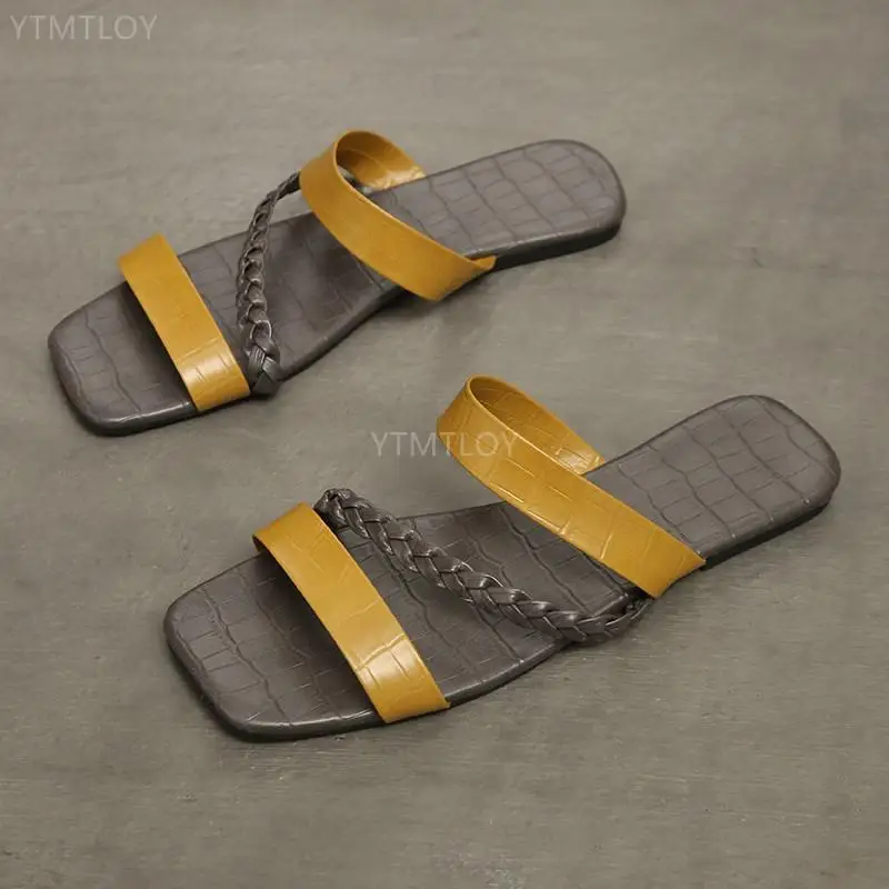 Шлепанцы женские с квадратным носком, плоская подошва, сланцы, дома...
