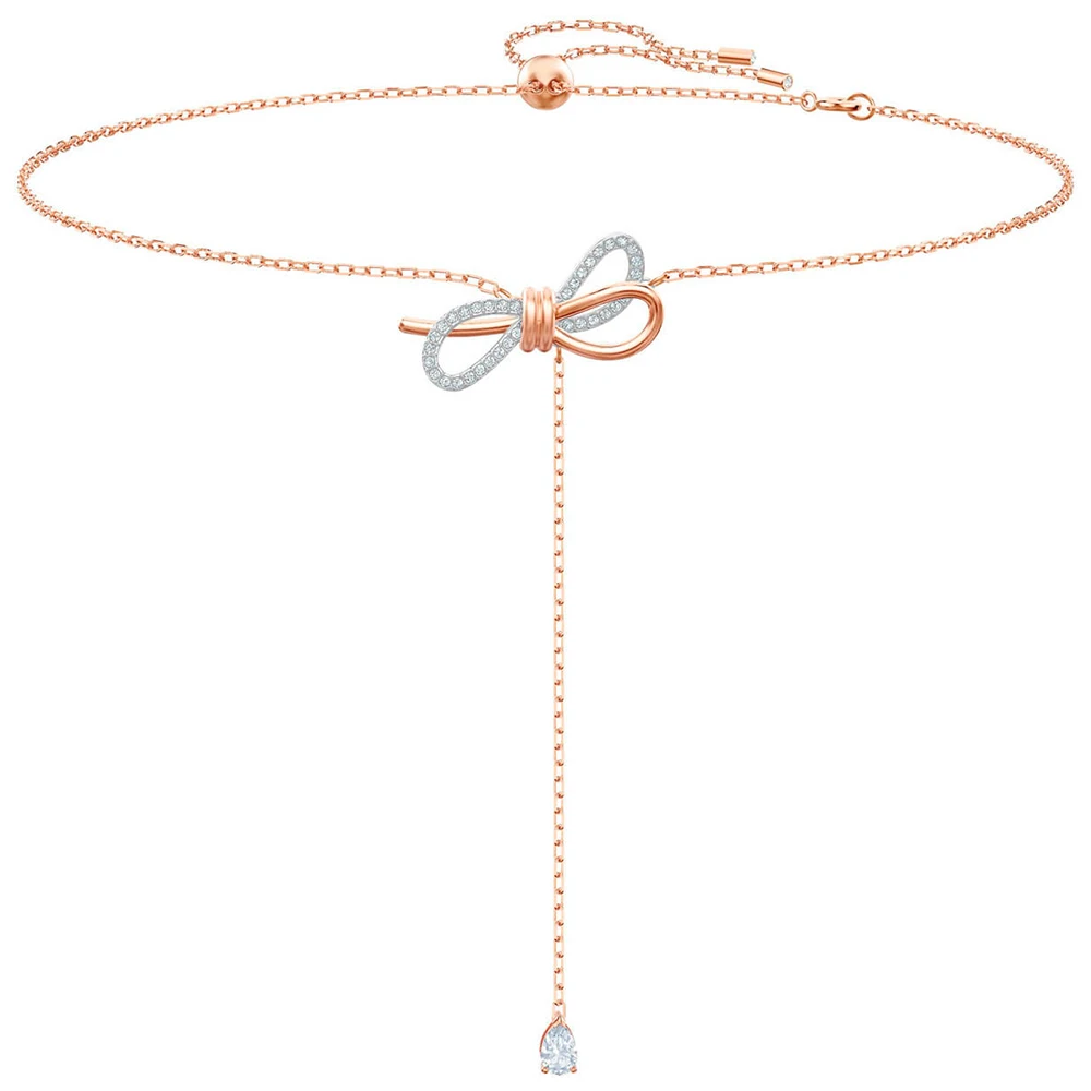 Лебедь ожерелье Бант Серьги для женщин знаковая Коллекция ювелирных изделий лебедь, розовое золото отделка, кристаллы ожерелье для женщин