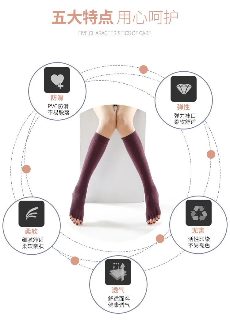 Женские носки для йоги с пятью пальцами, Нескользящие силиконовые н...