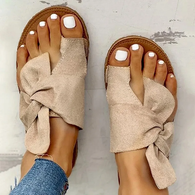 Шлепанцы женские с бантом, пляжные сандалии на танкетке, плоская подошва, сланцы, пляжная обувь для отдыха, модные тапочки, 2021