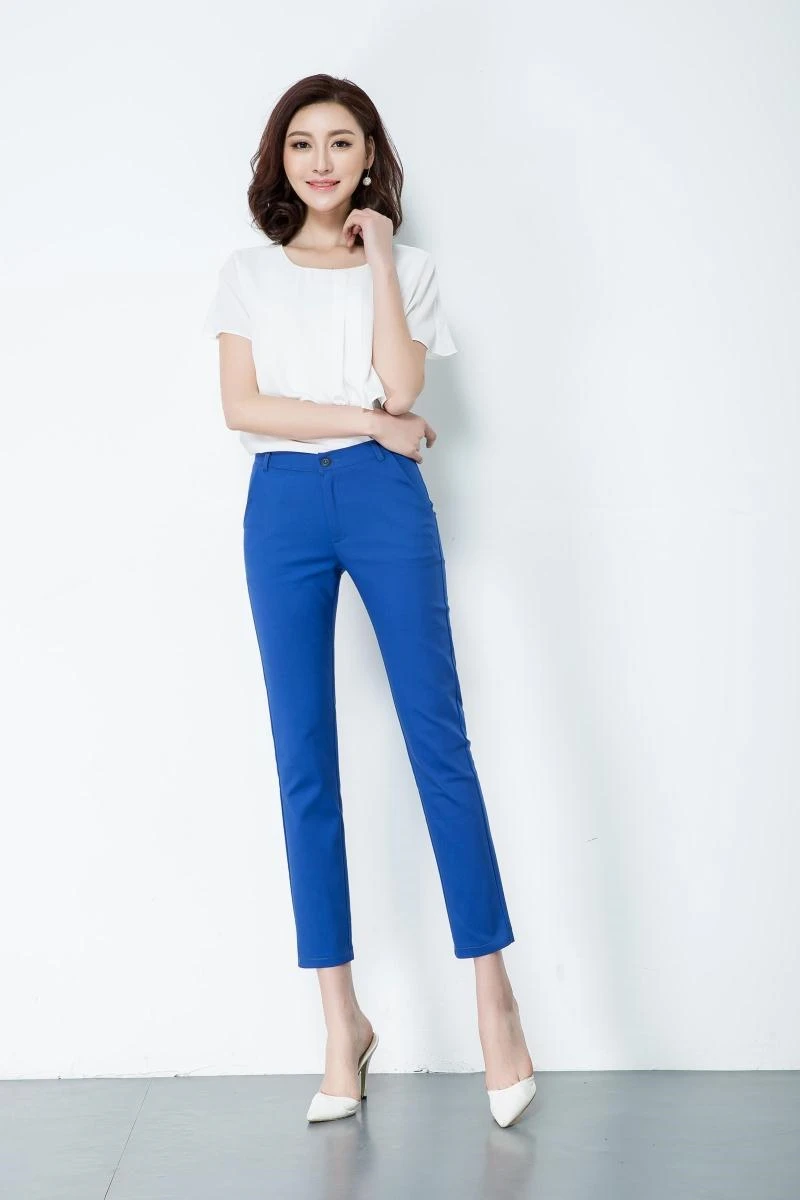 Повседневные Мягкие хлопковые брюки ярких цветов, базовые облегающие офисные брюки для девочек, модные эластичные брюки-карандаш, максимальная высота 165 см