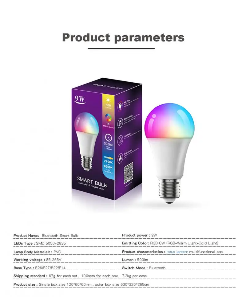 Умная Светодиодная лампа E27 с RGB-подсветкой, Wi-Fi, Bluetooth, совместима с устройствами управления, 9 Вт, работает с Alexa Google Home B22
