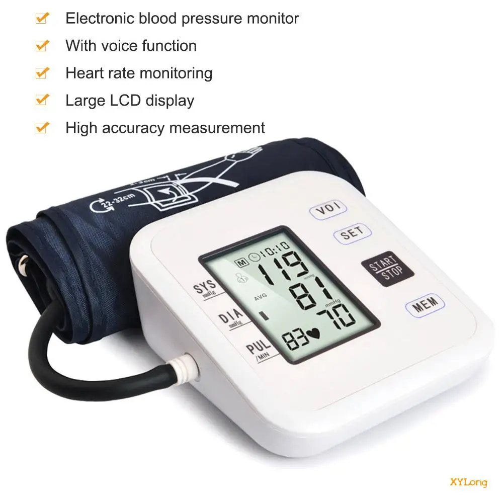 Автоматический электронный сфигмоманометр верхнего типа с ЖК-дисплеем, цифровой Интеллектуальный Сфигмоманометр для голосового вещания