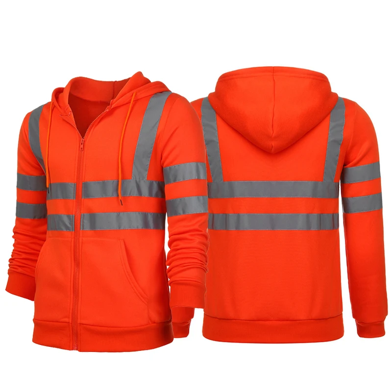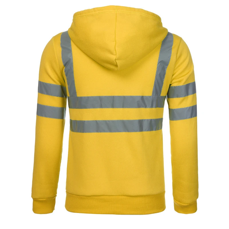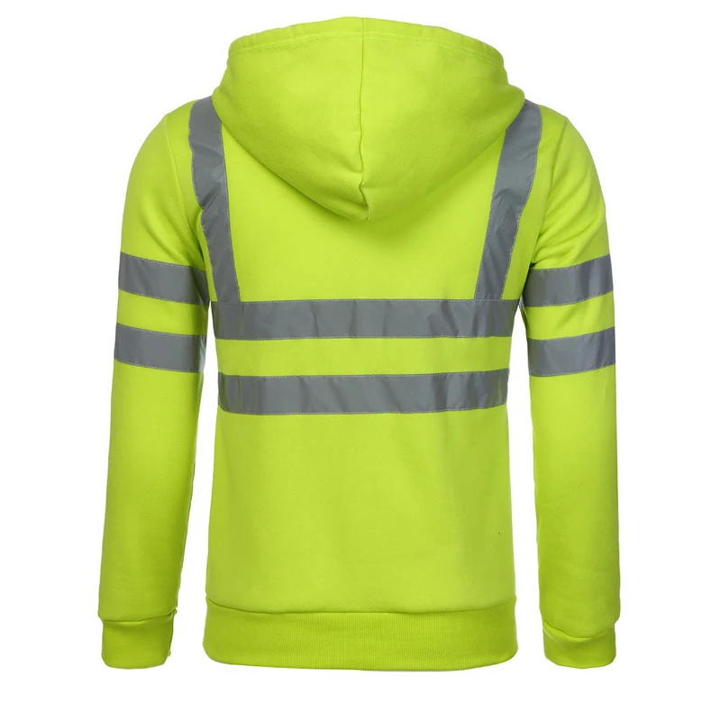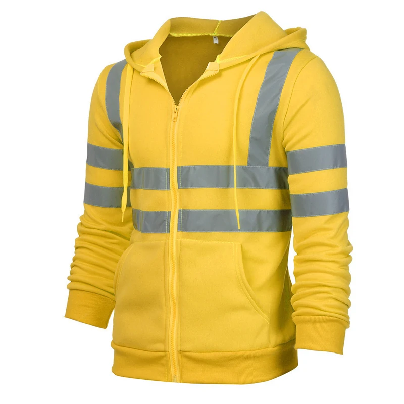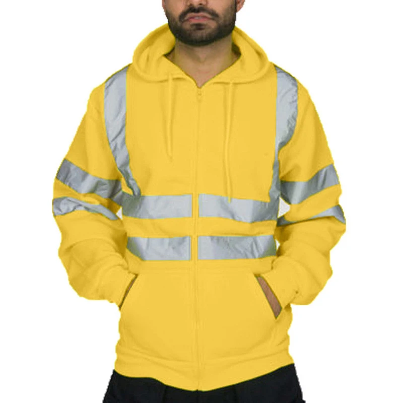 Мужская Светоотражающая куртка с капюшоном, рабочая флуоресцентная стирающаяся толстовка с капюшоном, в полоску, на молнии, однотонная, 1 шт.