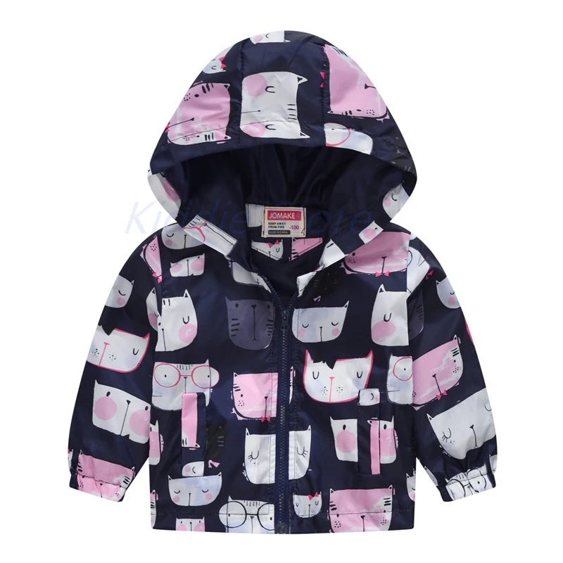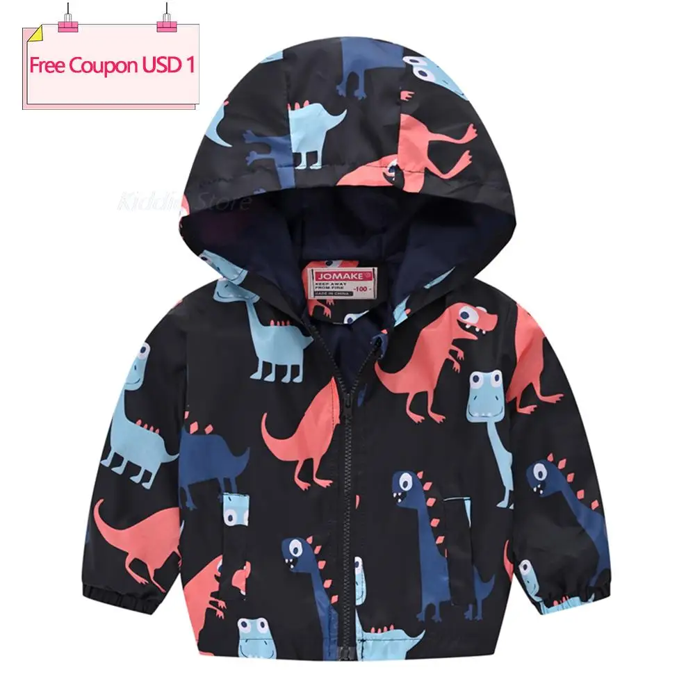 Осенняя куртка с мультяшным динозавром, пальто для мальчиков, одежда с принтом, ветровка с капюшоном для маленьких девочек, Весенняя детская верхняя одежда