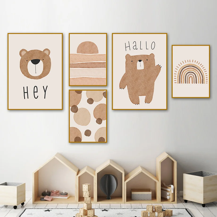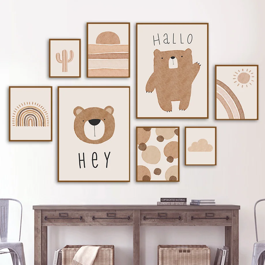 Абстрактная Радуга солнце облако кактус медведь Бохо настенная Картина на холсте скандинавские постеры и искусство детской комнаты декор