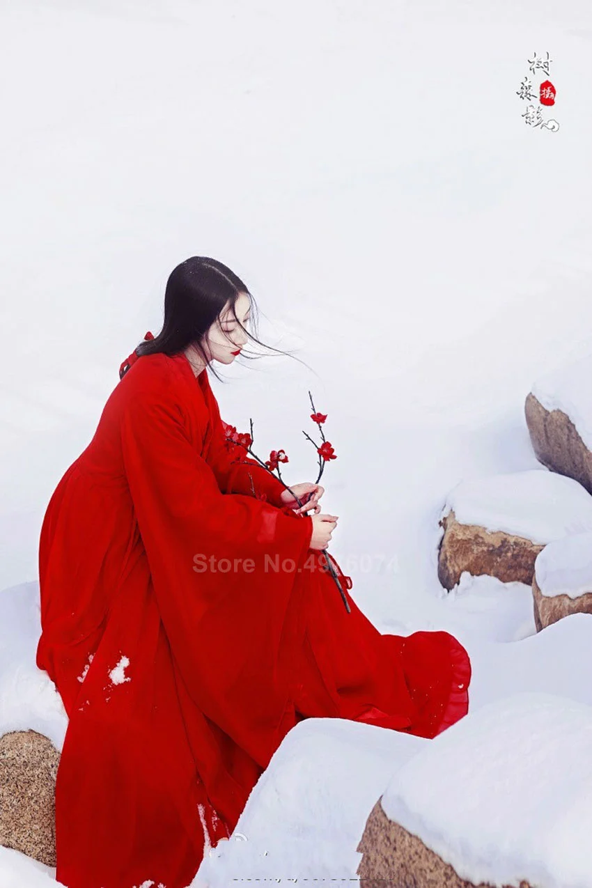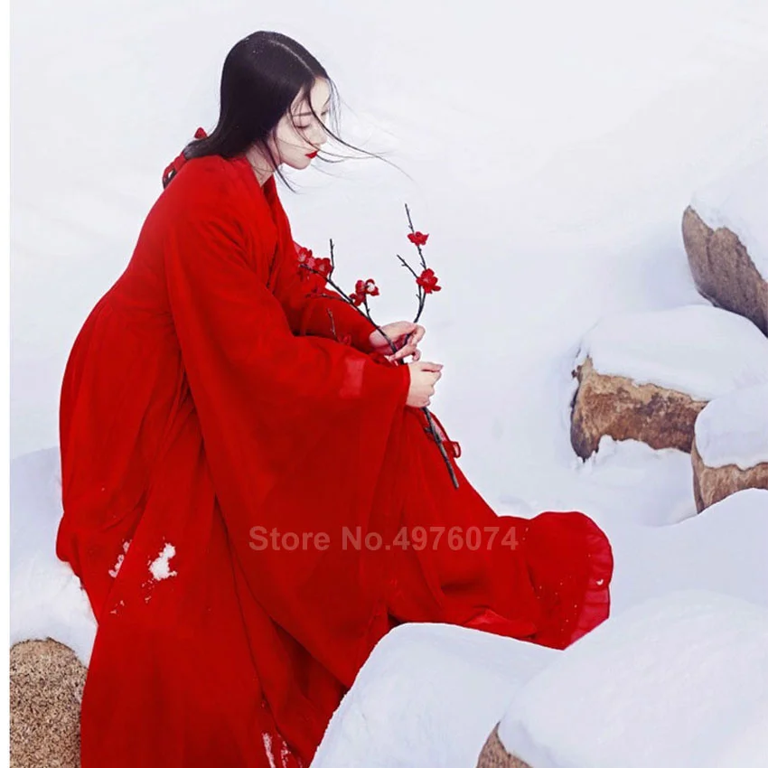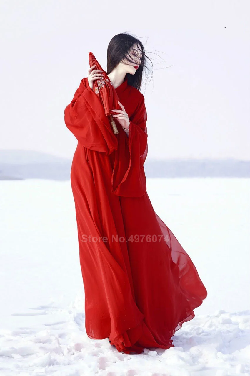 Восточное традиционное китайское платье Hanfu для женщин, однотонное красное платье размера плюс, шифоновые народные танцевальные костюмы, женский винтажный костюм Tang