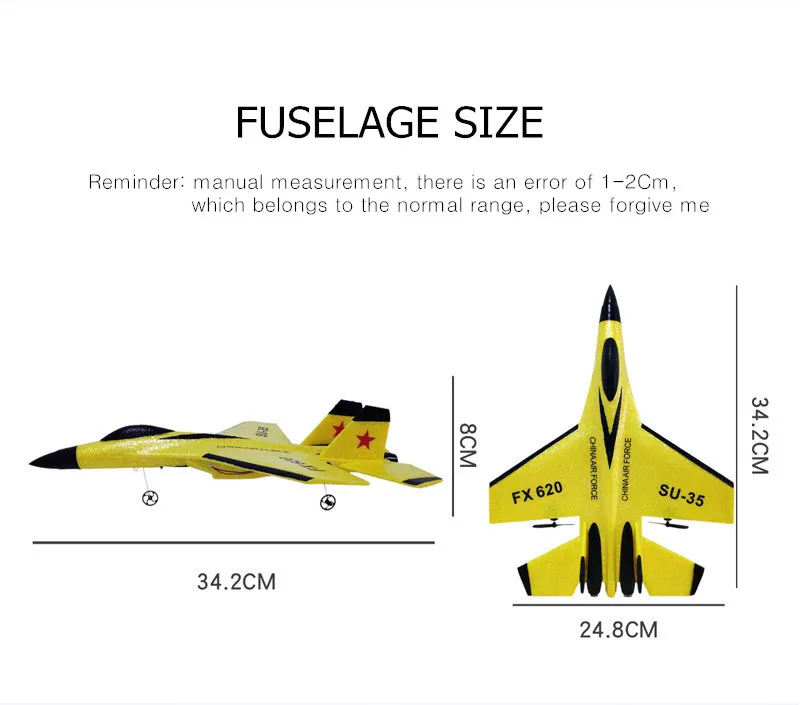 1 x RC самолет1x3,7 V 300mAh литий-полимерный Батарея (встроенный)1 х пульт дистанционного управления1 зарядное устройство USB1 х руководство на английском языке(Не содержит клея)