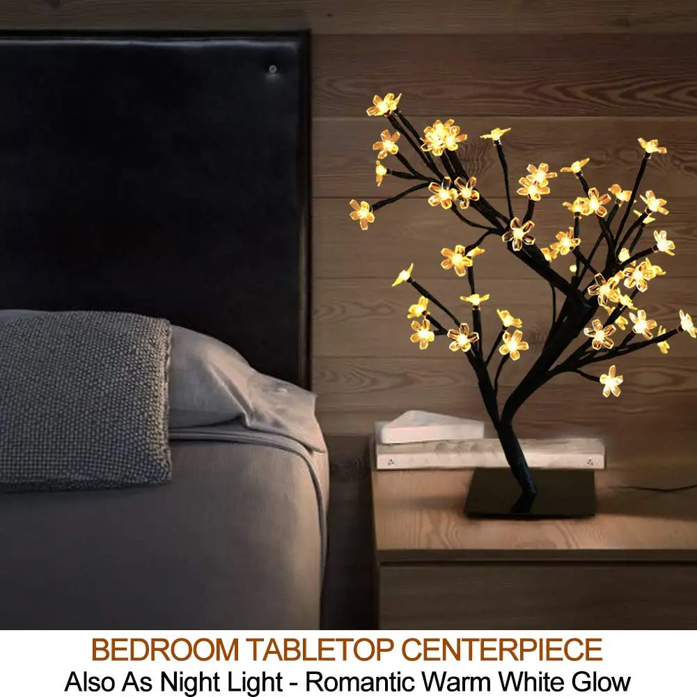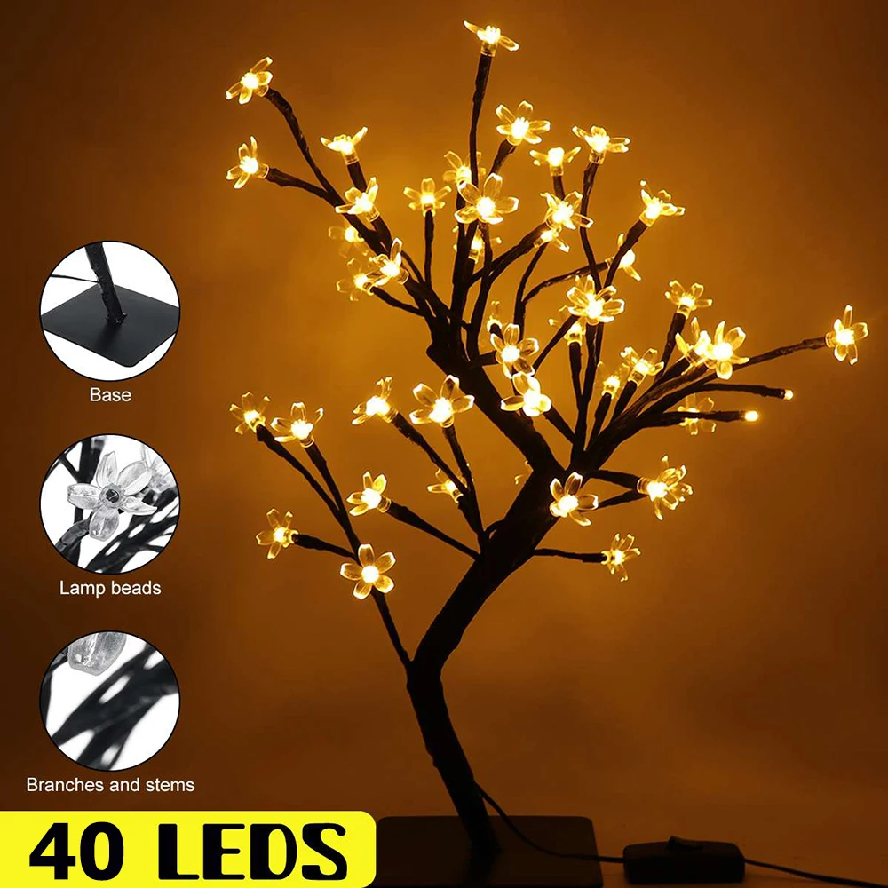 Светодиодный светильник в виде цветущей вишни, настольная лампа для домашнего декора, ночсветильник теплого белого цвета, светильник тное освещение, декоративное освещение для спальни
