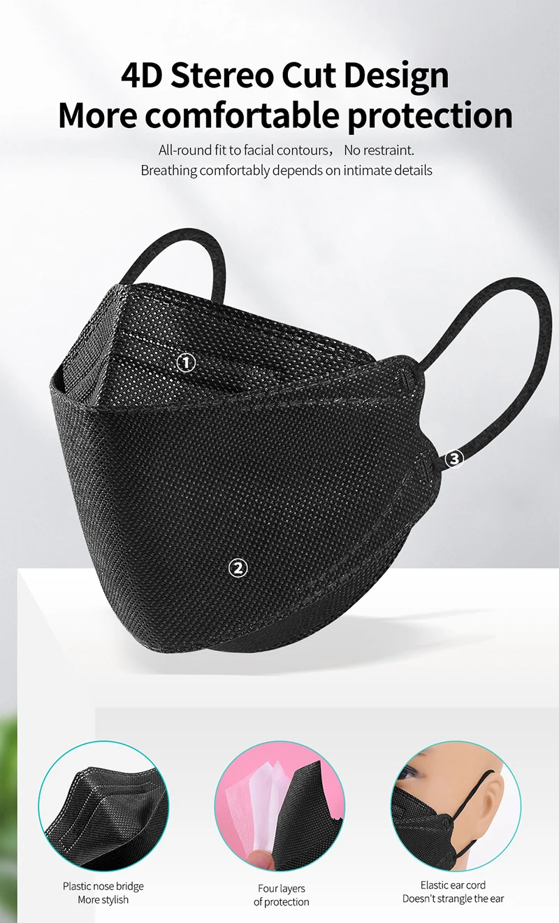 Маска для лица для взрослых KN95 маска для лица одноразовая 4-слойная Нетканая Пылезащитная fpp2 ткань для туши для ресниц одноразовая черная маска для лица ffp2 маска