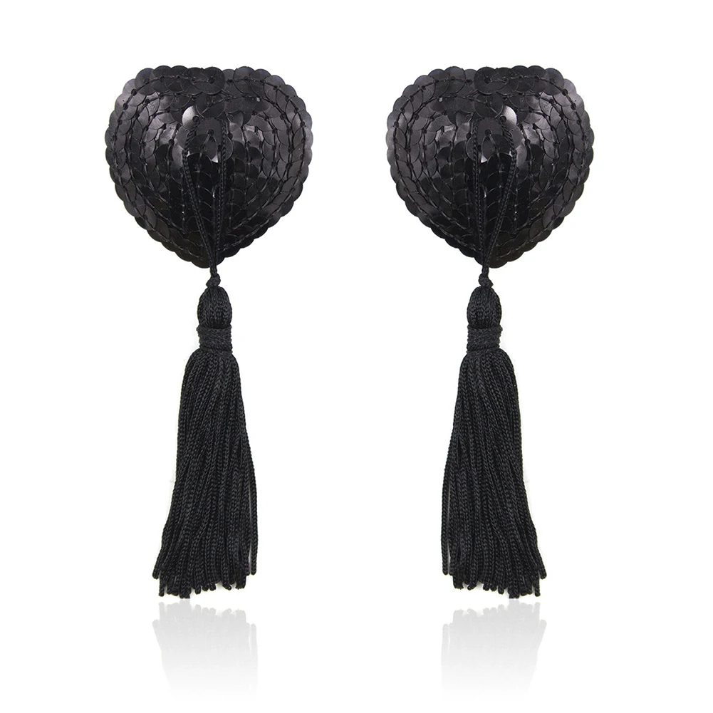 Наклейки на соски женские, черные, с блестками и кисточками, 1 пару...