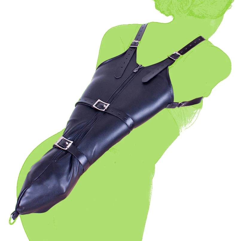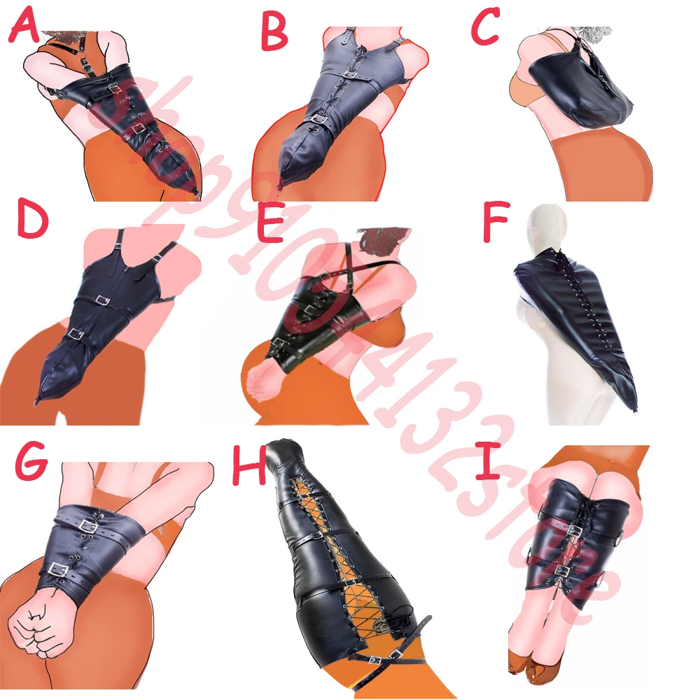 БДСМ Связывание ногбандаж для рук, за спиной бондаж armсвязывающий кожаный прямой пиджак Slave Запираемая перчатка с плечевыми ремнями сексуальный комплект