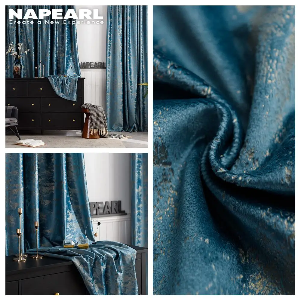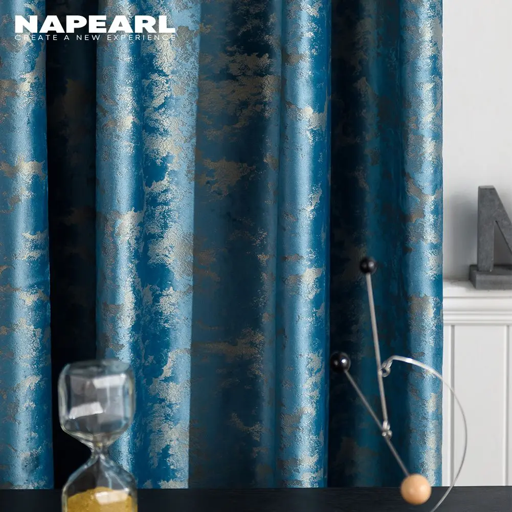 Простая синяя Затемняющая штора NAPEARL в скандинавском стиле для гостиной, столовой, спальни светильник шная плотная бархатная занавеска с бронзовой текстурой