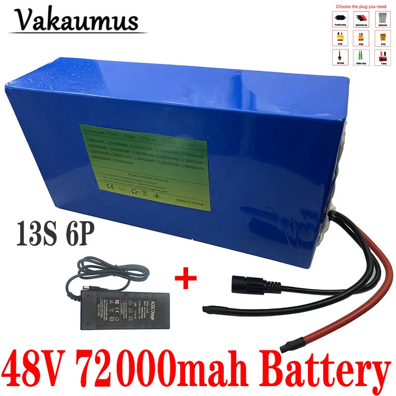 48 в 72 Ач 13S 6P 25A BMS + 52 в 18650 комплект литий-ионный батарей высокомощный баланс, подходит для автомобилей, мотоциклов, электрических скутеров