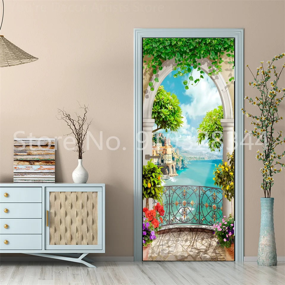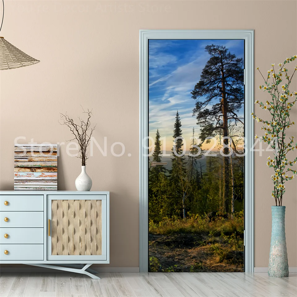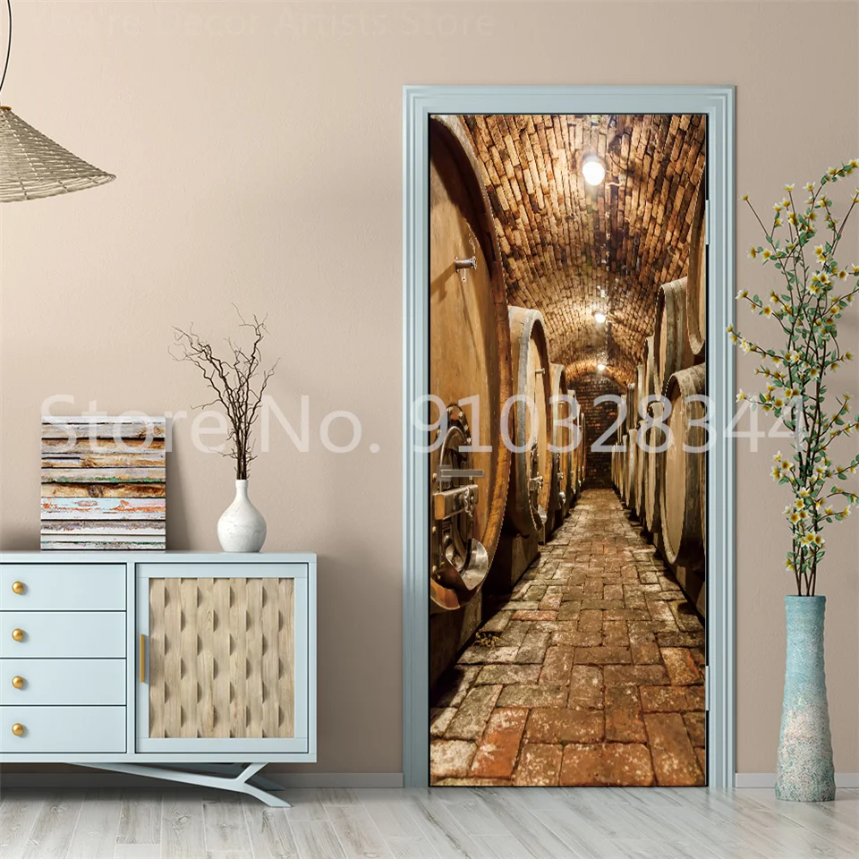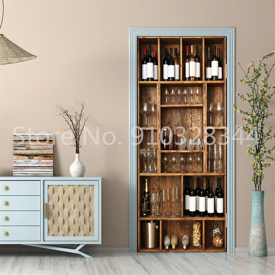 Самоклеящаяся настенная 3d-наклейка на дверь, Постер для обновления деревянной двери, Настенная Наклейка с изображением пейзажа, винного шкафа, звездного неба, для дома