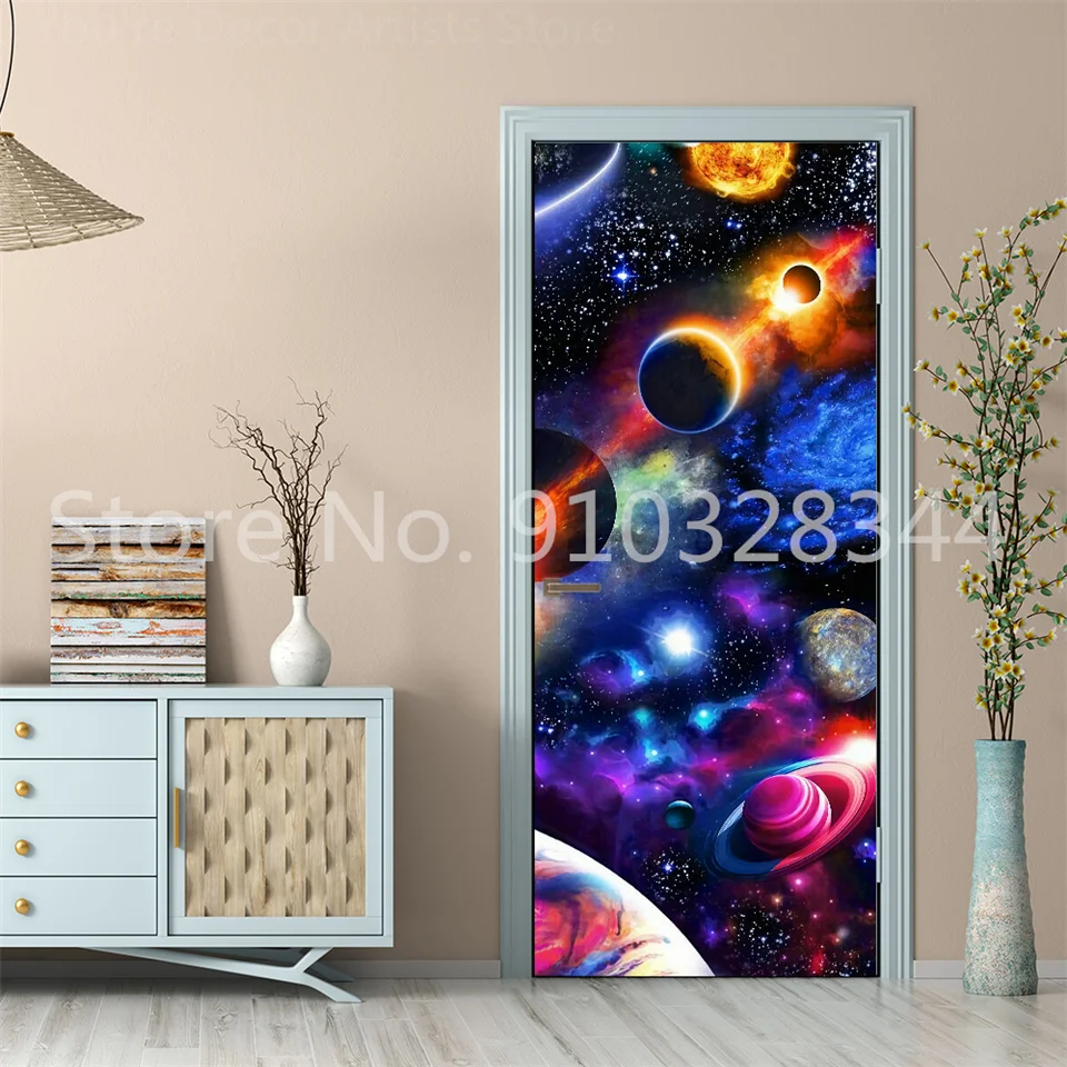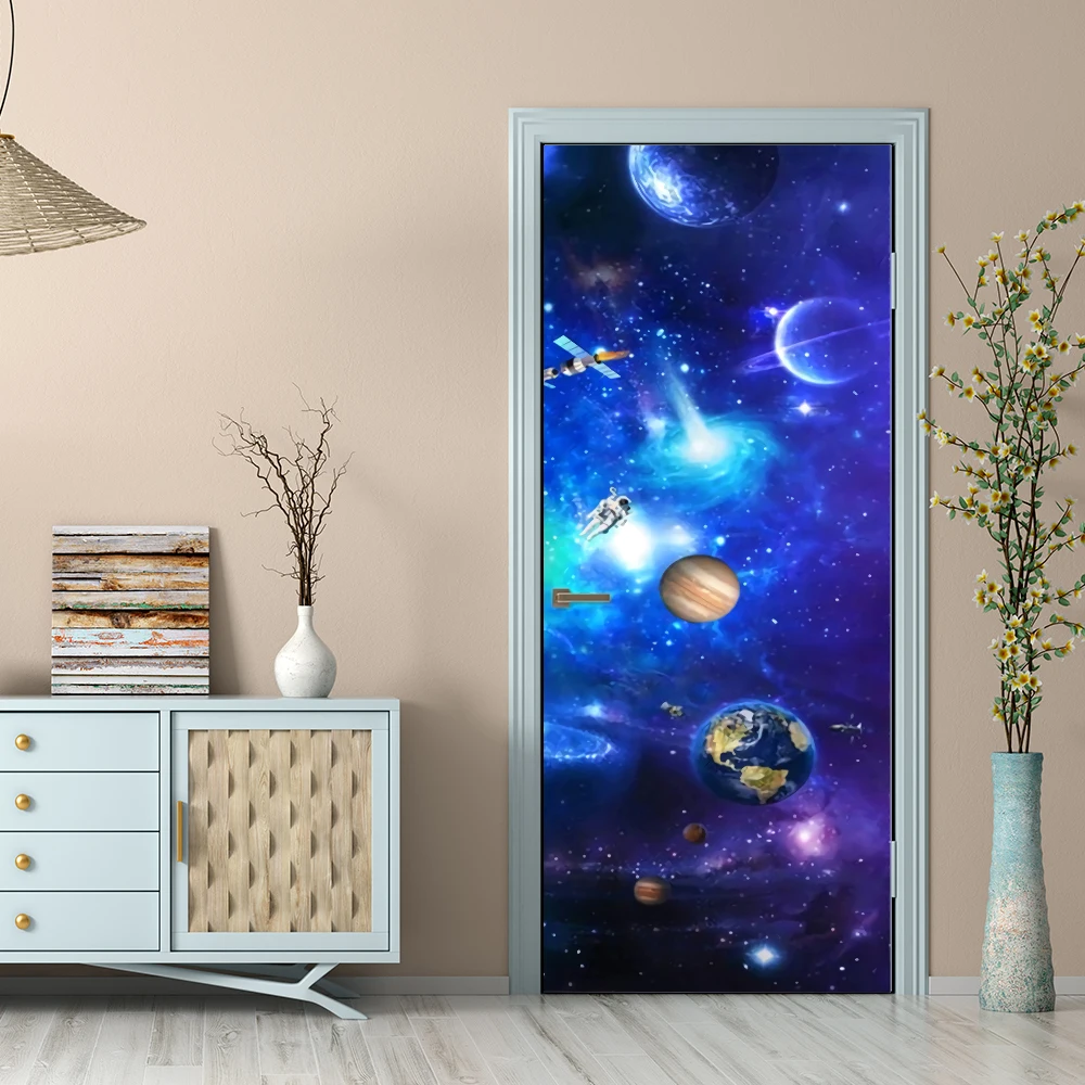 3D самоклеющиеся виниловые обои на дверь, деревянные двери, постер, пейзаж, винный шкаф, звездное небо, Настенная Наклейка на заказ, роспись для домашнего декора