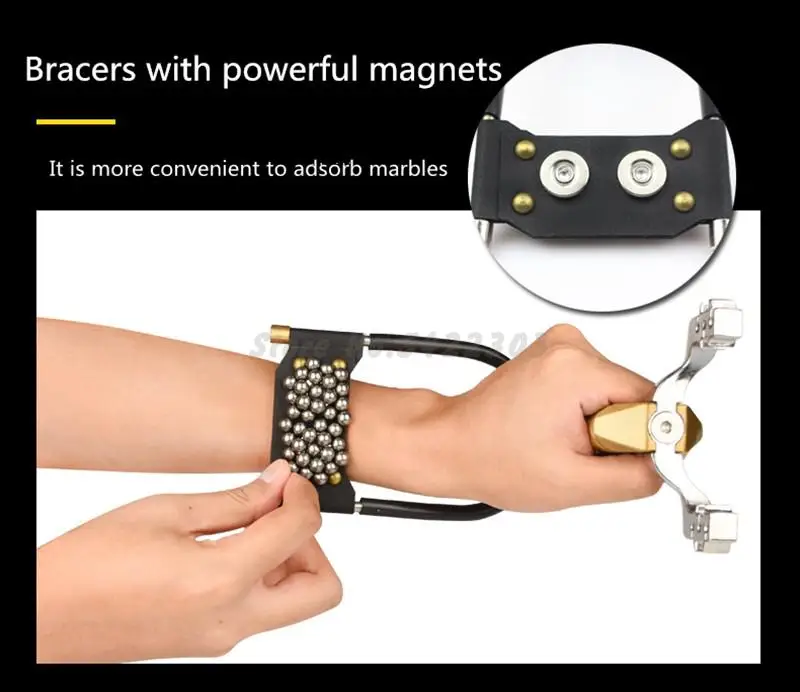 Мощная Рогатка с резиновыми лентами, складная Рогатка на запястье, для улицы, черная, золотая, для охоты, Рогатка для стрельбы, стальные шарики, инструменты