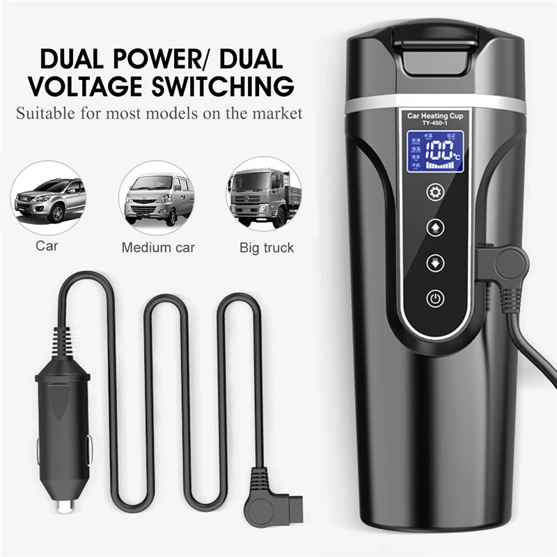 450 мл Автомобильная нагревательная чашка из нержавеющей стали 12В24В электрическая чашка для воды с жидким кристаллом дисплей температура чайник для кофе чая молока нагрев