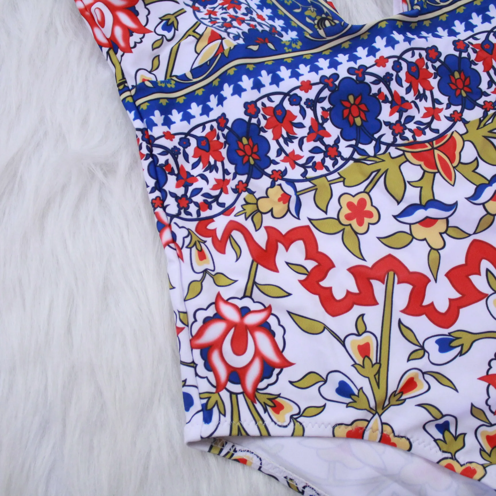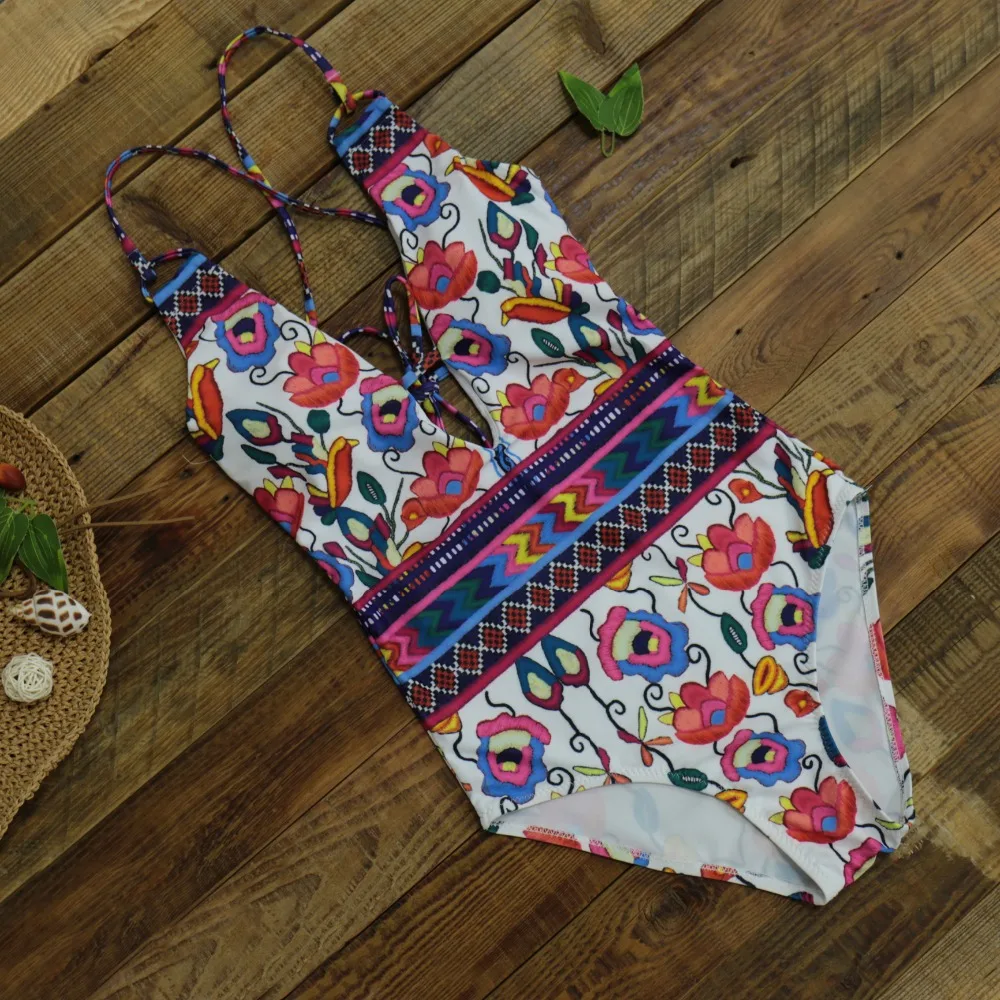 Женский слитный купальник с цветочным принтом и чашками пуш-ап