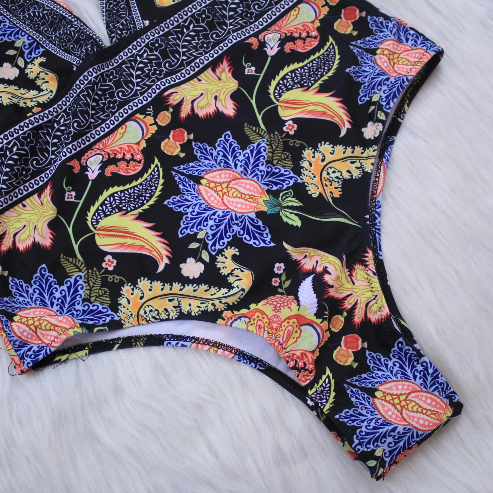 Женский сплошной купальник, купальник с цветочным принтом, бикини п...