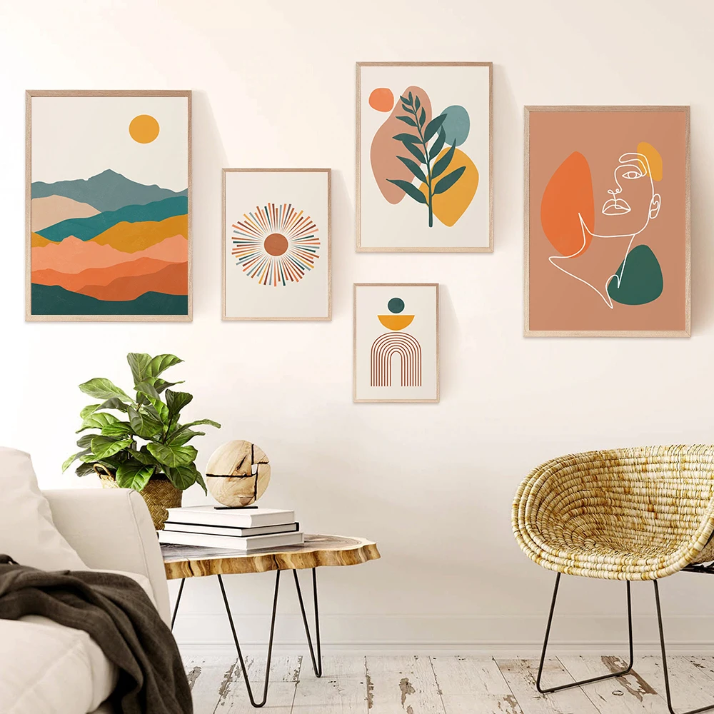 Скандинавская абстрактная линия, солнце, художественный постер, бох...