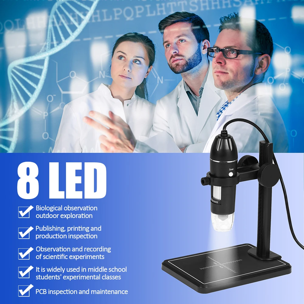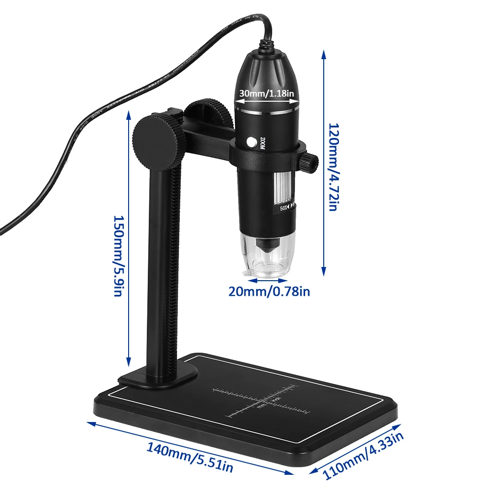 Описание:1600X цифровой микроскоп 8 светодиодов 2MP электронный микроскоп с подъемной подставкой X4 USB зум-камера лупа для MAC Android PC черныйHD 2MP объектив, разрешение 1920x1080P(Интерполяция)8 регулируемых светодиодов, сильная яркость, более четкая.Поставляется с регулируемой высотой подставкой, вы можете легко изменить высоту, вращая ручку, также может быть как ручной микроскоп.С адаптером type C/micro USB, подходит для MAC, Android мобильных телефонов и ПК.Может быть применен для лабораторных исследований, электронных компонентов, идентификации ювелирных изделий и т. Д. Также подходит для студентов, детей, взрослых, чтобы делать монеты, штампы, кожу, волосы, наблюдения за насекомыми и т. Д.Характеристики:Название товара: Цифровой Микроскоп USBЦвет: черныйМатериал: АБС-пластикУвеличение: 1600XДатчик: Высокопроизводительный Фоточувствительный чипГлавный чип управления: специальный основной контроль 16 бит DSPФото/видео запись: ВстроенныйСтруктура линз: 2G + IRКамера светильник источник света: 8 регулируемый светодиодный светильникИсточник питания: USB (5 В постоянного тока)Диапазон освещения: 0 ~ 30000LUX регулируется проводомФокусное расстояние: 0 ~ бесконечностьРазрешение камеры: 1920x1080P(Интерполяция)Формат изображения: JPEGФормат видео: AVIОсобенности: ручнойХарактеристики: 1600x микроскоп usbХарактеристики: электронный микроскоп для телефонаХарактеристики: цифровой Лупа с светильникХарактеристики: микроскоп для сотового телефонаХарактеристики: микроскоп для телефона androidПримечание:-Внимание: крышка объектива должна быть удалена перед использованием.-Возможны незначительные погрешности в размере при ручном измерении.-Отклонение цвета может отличаться из-за различных настроек монитора, пожалуйста, поймите.