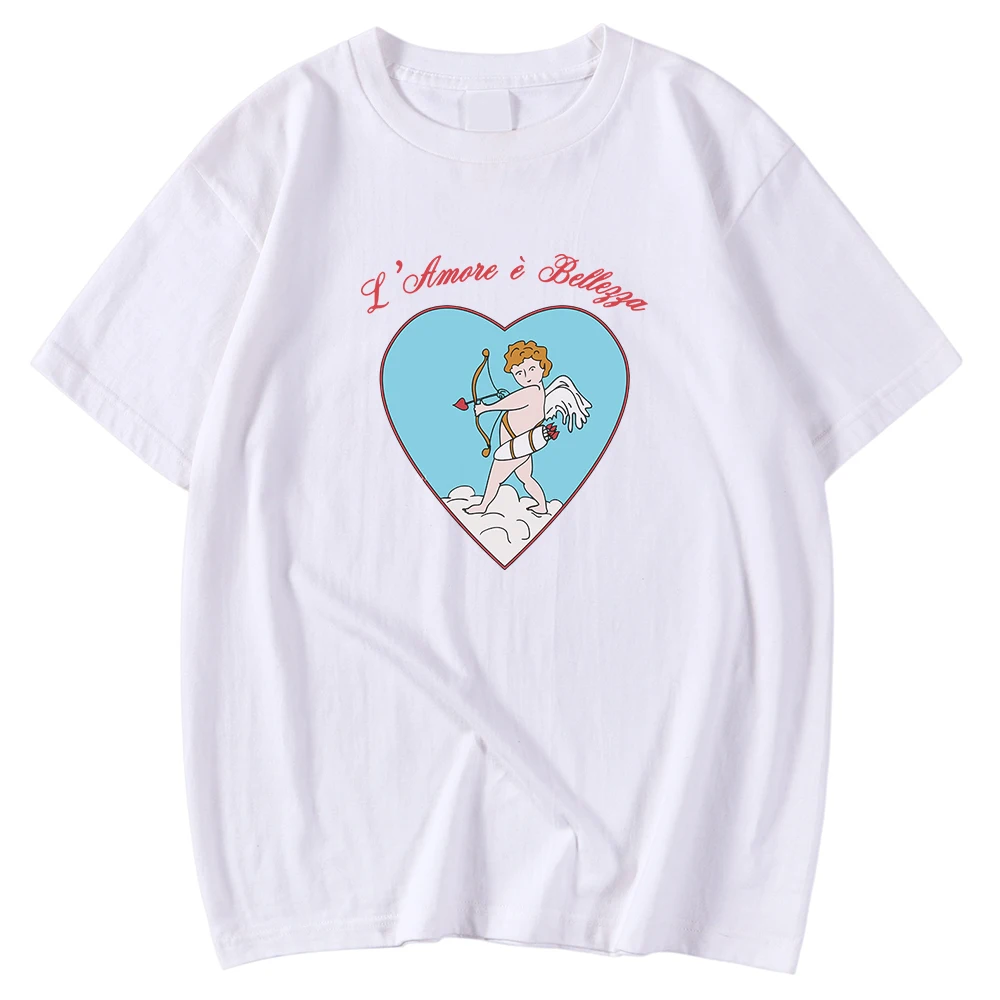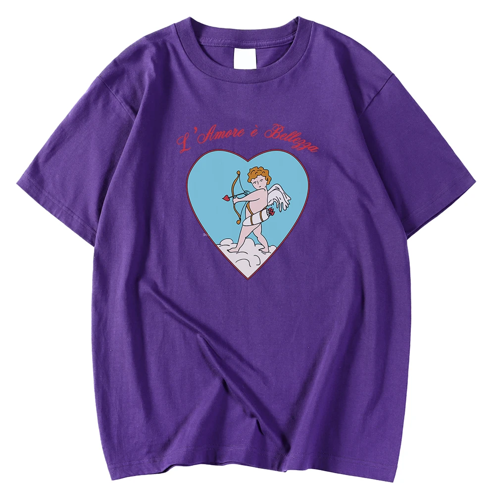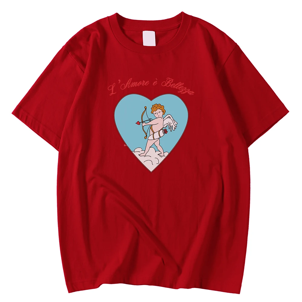 Футболка мужская с коротким рукавом, удобная рубашка с круглым вырезом, топ с принтом в виде Купидона и лука со стрелками и сердечками, футболка большого размера