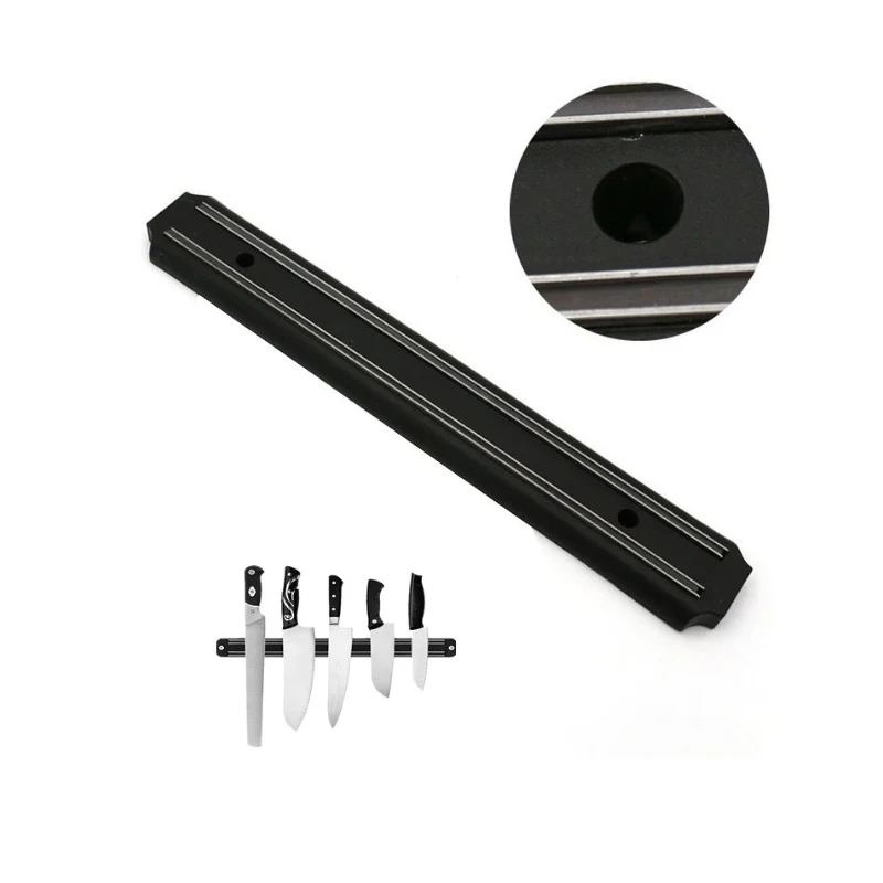 Магнитные ручки для ножей надежно закреплены, но легко выпускаются ножи, кухонные гаджеты или инструменты. Компактный, удобный и практичный держатель идеально подходит для кухонь, мастерских или гаражей. Магнитная лента для хранения может быть прикреплена к любой стене для немедленного доступа. Укладка ножей в ящиках может привести к случайным разрезам и царапинам обеих рук пользователя и других инструментов, но полоса держит ножи видимыми и разделенными через притяжение между магнитом и лезвием. Легко устанавливается с помощью винтов. Родители с маленькими детьми могут захотеть установить ленту для хранения в недоступном для детей месте, пока они не будут достаточно взрослыми, чтобы безопасно использовать ножи