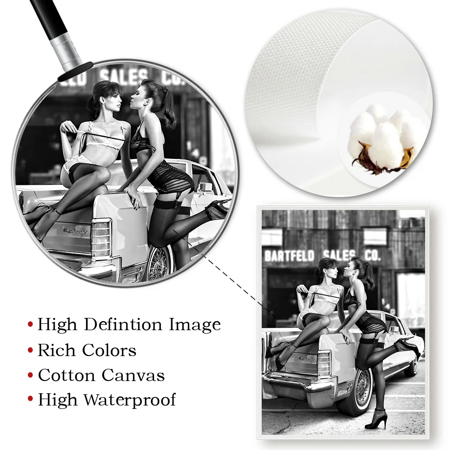 Модная женщина Doberman автомобиль Ретро черная Белая настенная Кар...