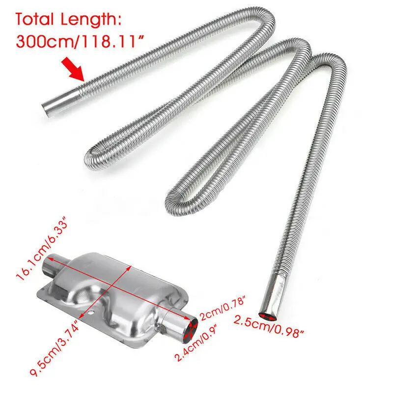 300 см воздушный дизельный парковочный обогреватель, трубка выхлопной трубы из нержавеющей стали с 2 зажимами, газовый шланг для вентиляции автомобиля, грузовика, дизельный Обогреватель
