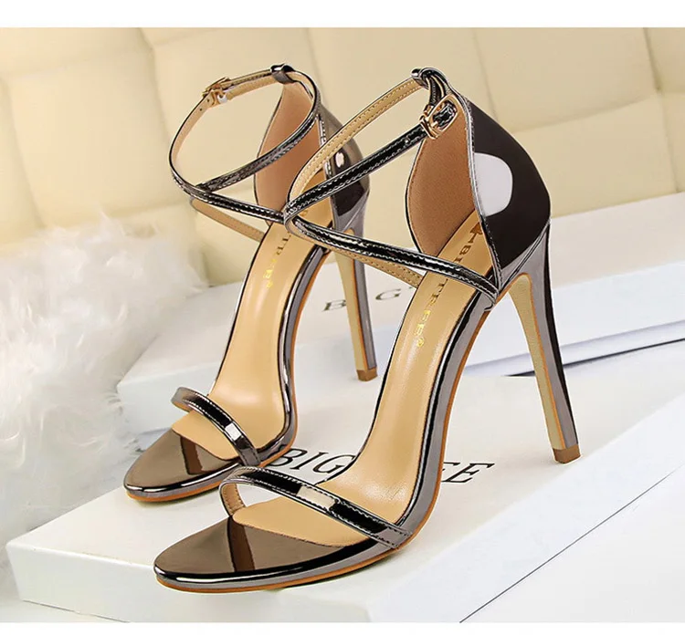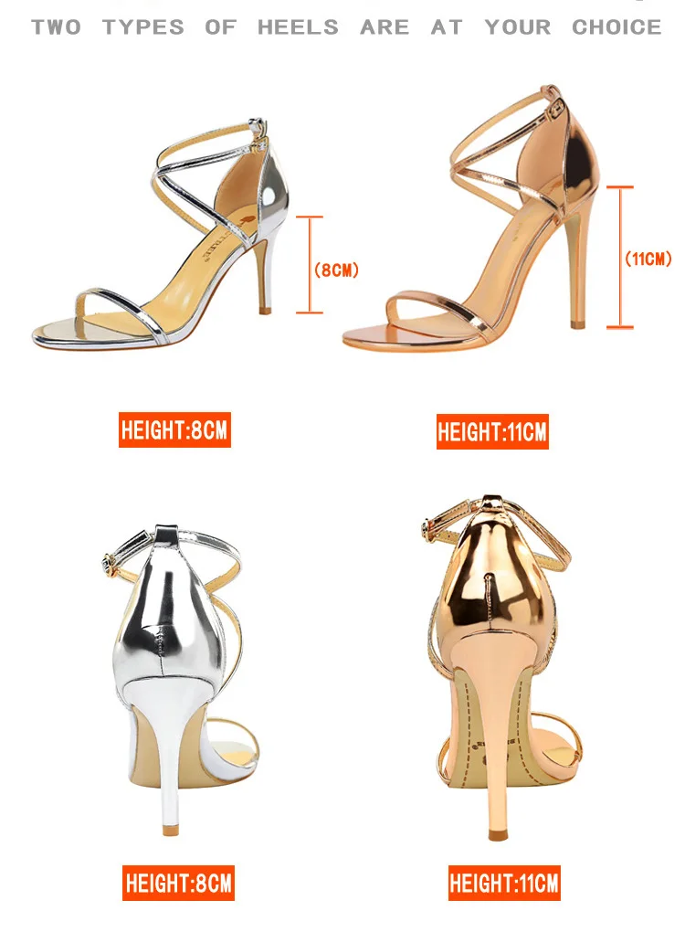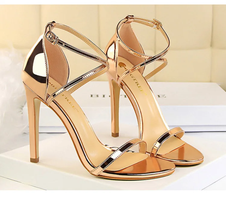 Обувь BIGTREE; Женские туфли-лодочки с пряжкой и ремешком на высоком каблуке; Цвет золотой, серебряный; Женские туфли на шпильке 11 см; Пикантные вечерние туфли из лакированной кожи для женщин