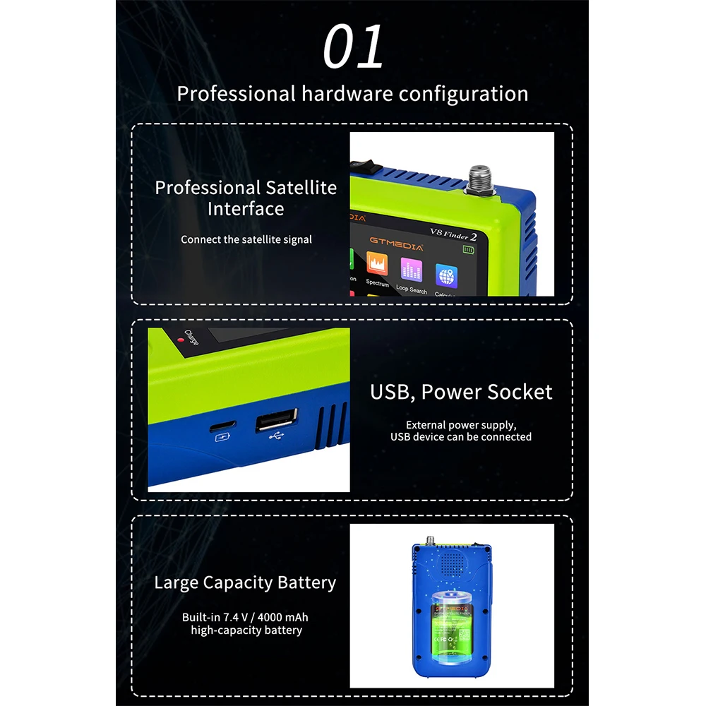 GTmedia V8 Finder 2 Finder Meter DVB S2XS2S антенна Spectrum Loop Search 3,5 дюймов HD LCD 5000mA 18 Вт Быстрая зарядка V8 Finder2