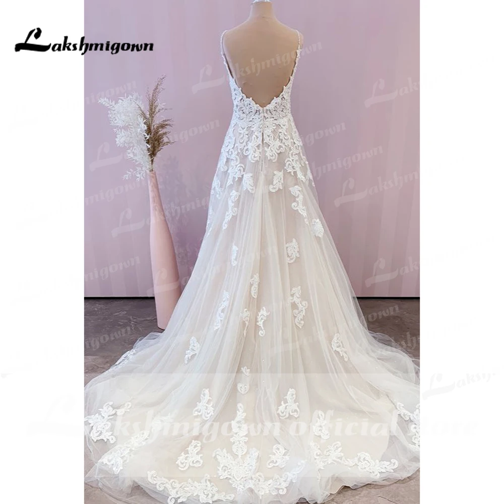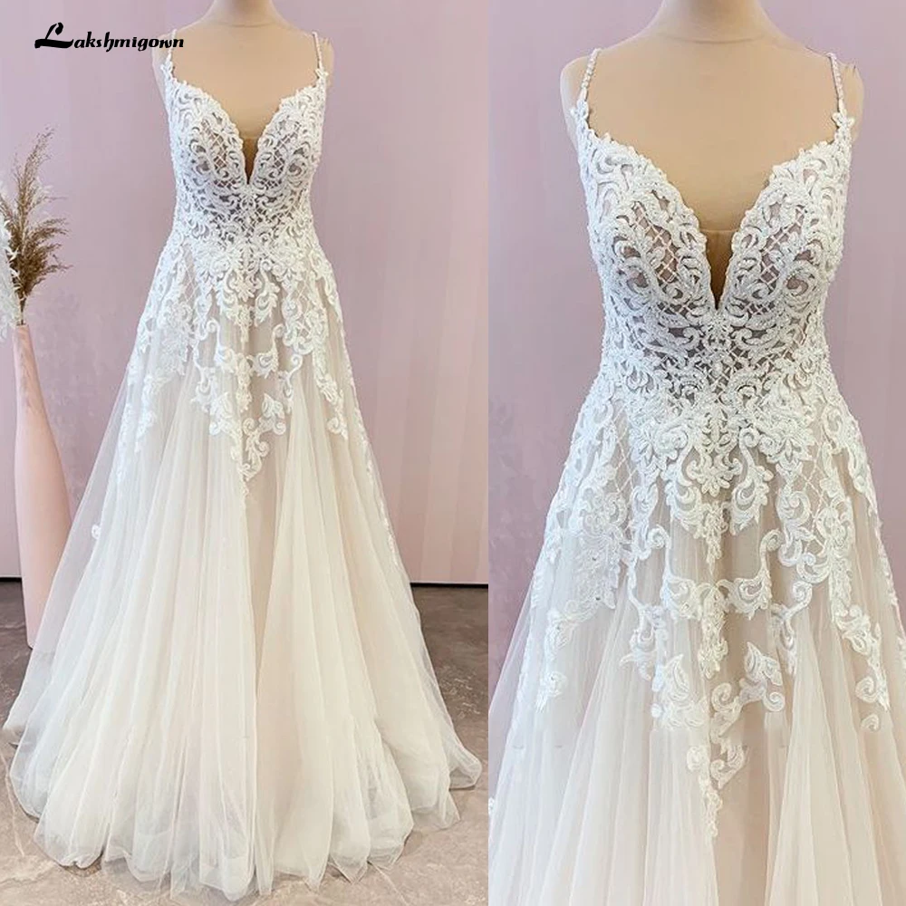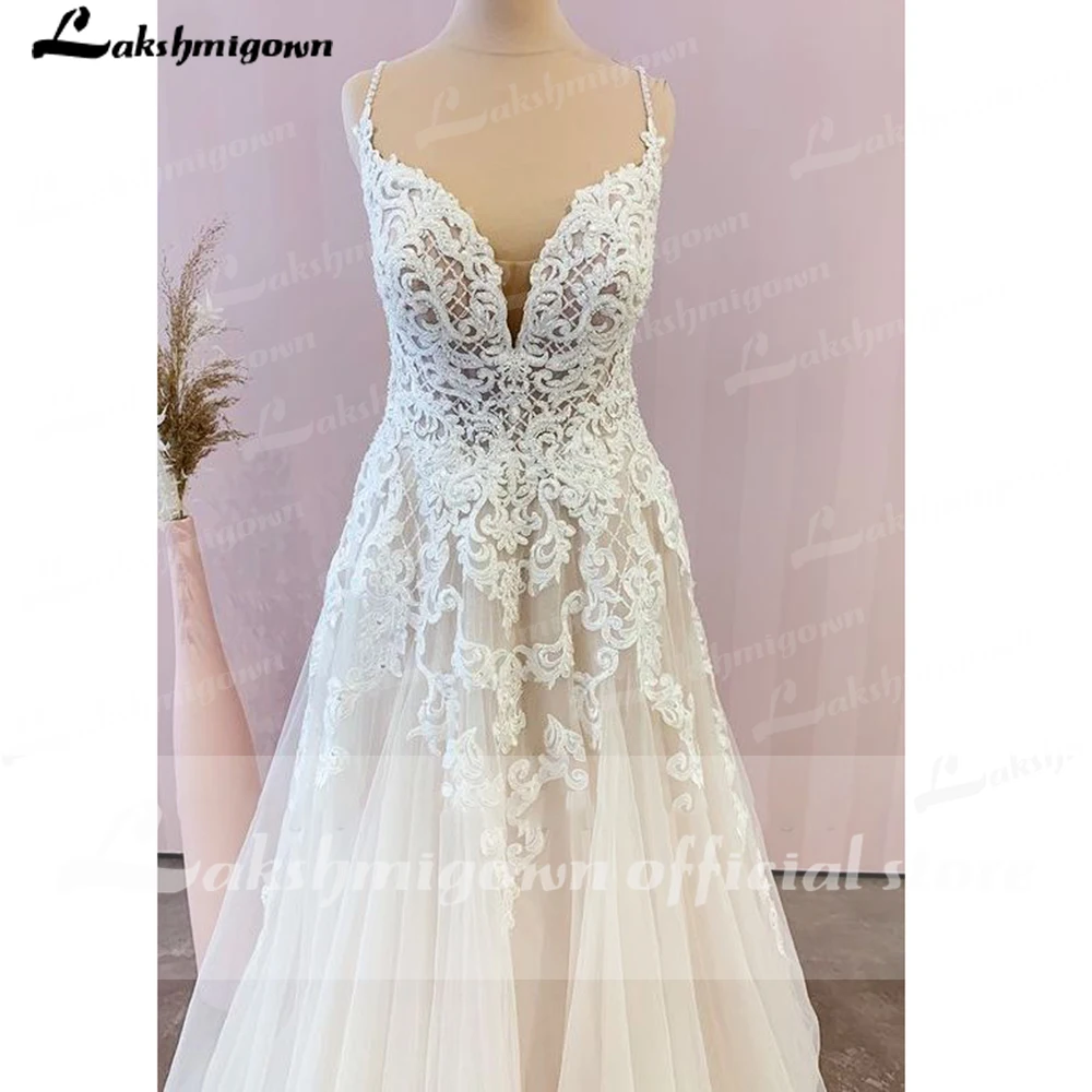 Женское кружевное свадебное платье на бретельках, Пляжное Платье с V-образным вырезом и длинным шлейфом в стиле бохо, 2022