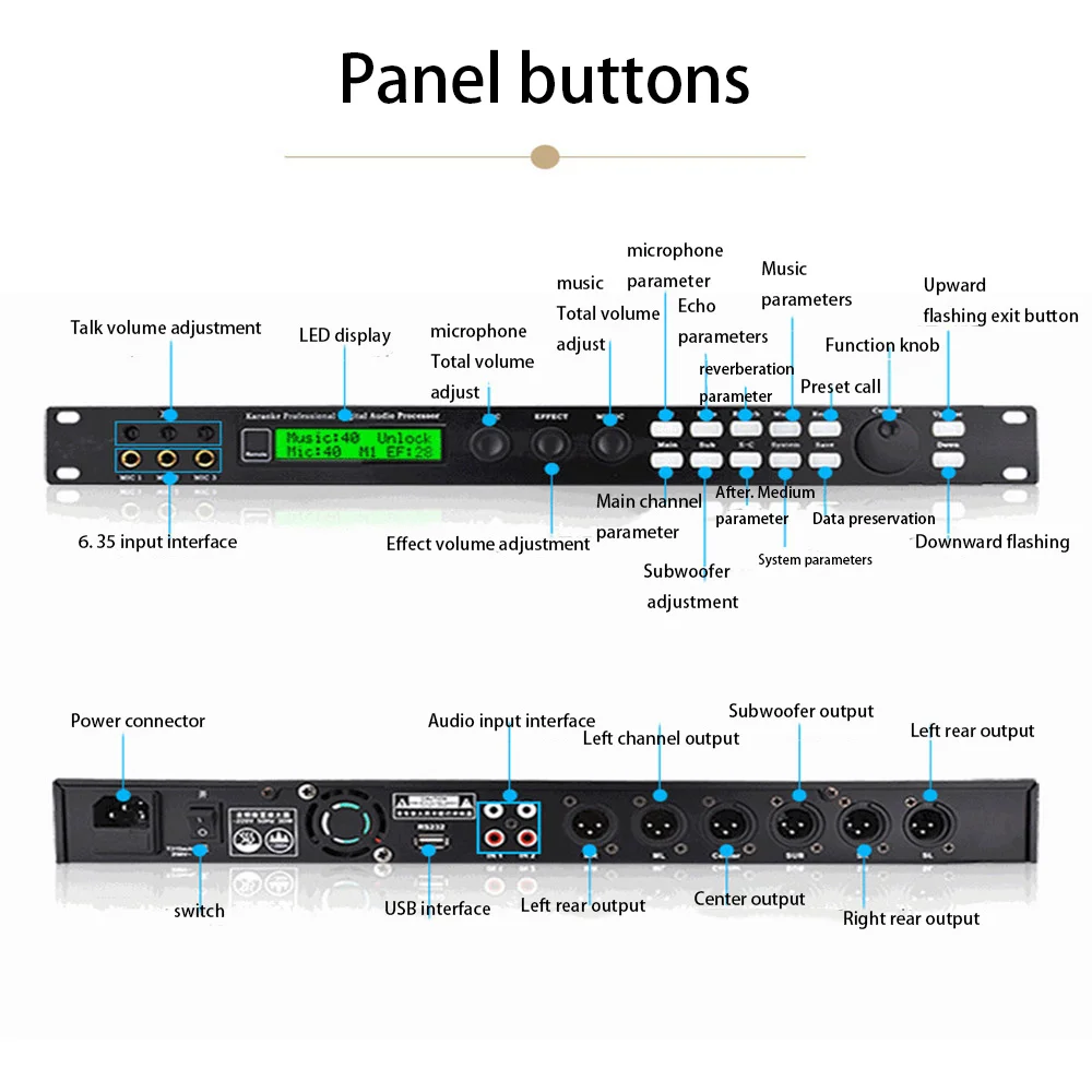 Высокомощный цифровой компьютер с предступенчатым эффектом реверберации, процессор с защитой от воющего звука для выступления на сцене