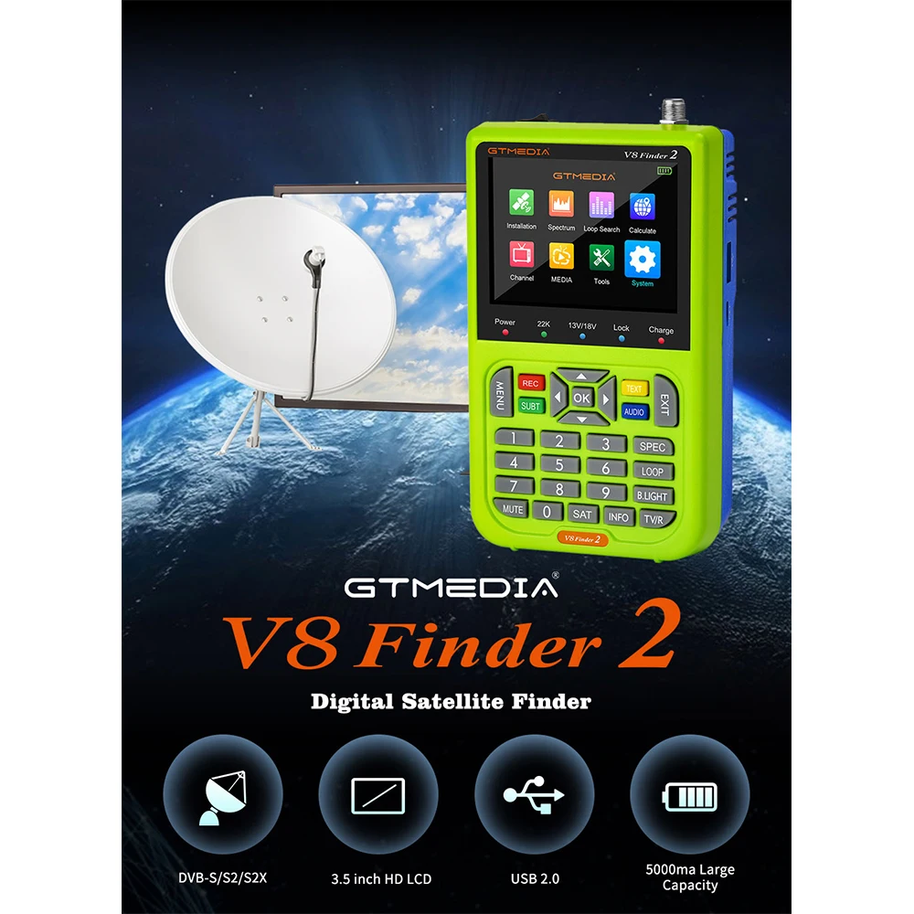 Портативный фотометр V8 Finder2, GTmedia DVB S2XS2S, антенна спектра, петля поиска, 3,5 дюймов HD LCD V8 Finder 2