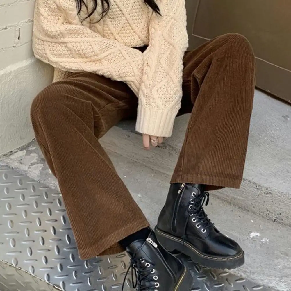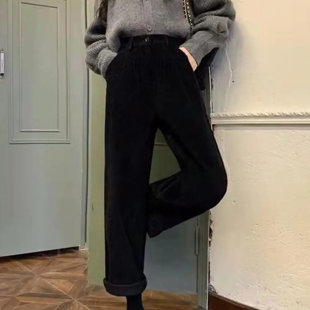 Женские брюки с высокой посадкой и пуговицами, однотонные прямые широкие брюки с карманами, винтажные элегантные вельветовые брюки с высокой талией
