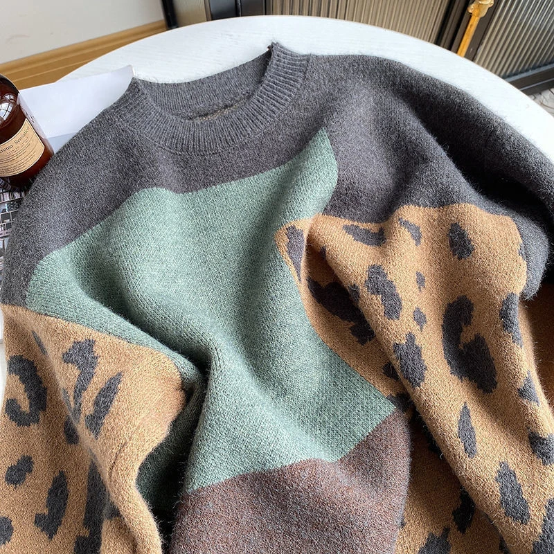 Wixra женский леопардовый свитер в стиле пэчворк, Женский базовый джемпер с длинным рукавом и круглым вырезом, весна 2022, новый модный топ